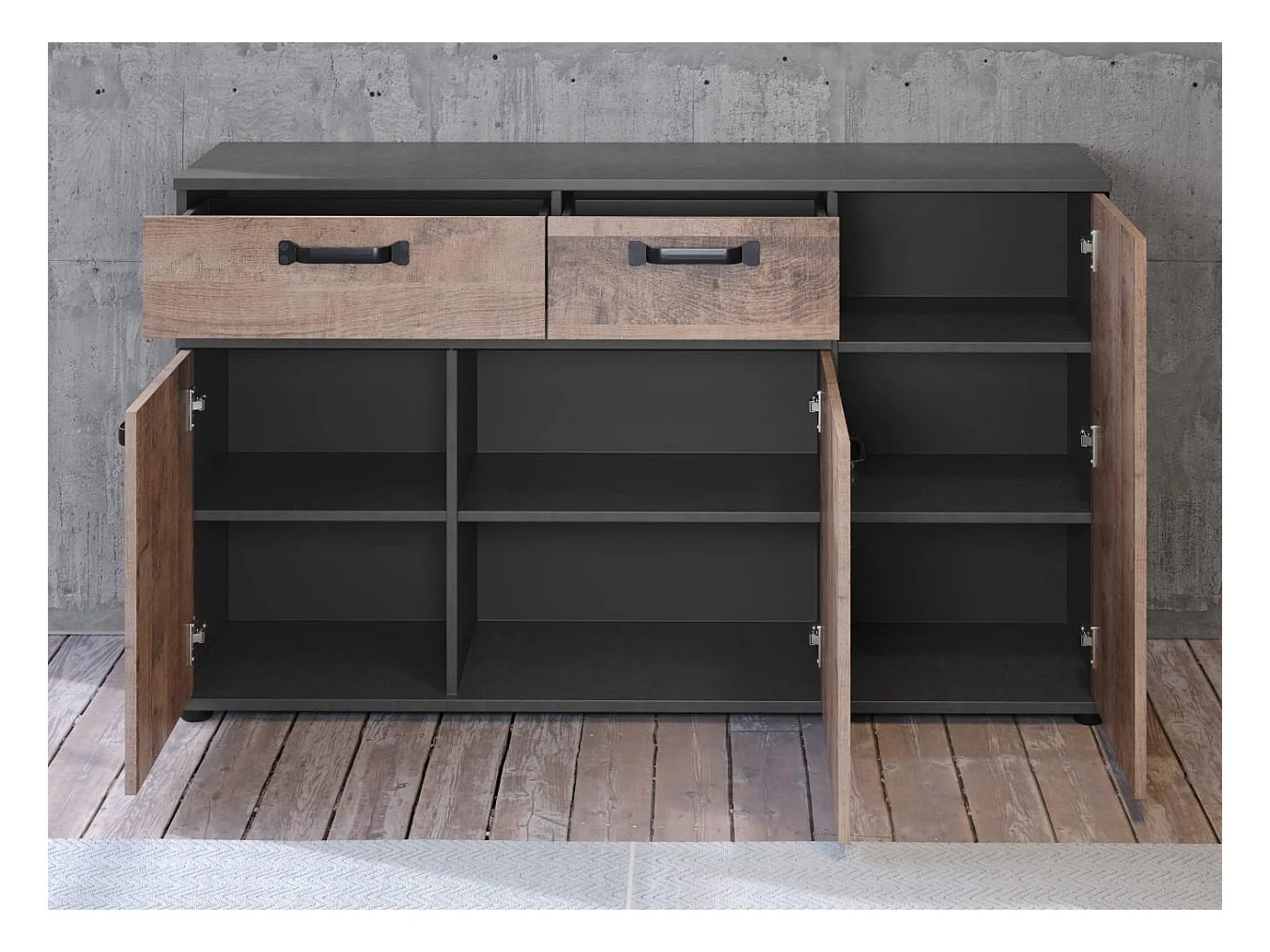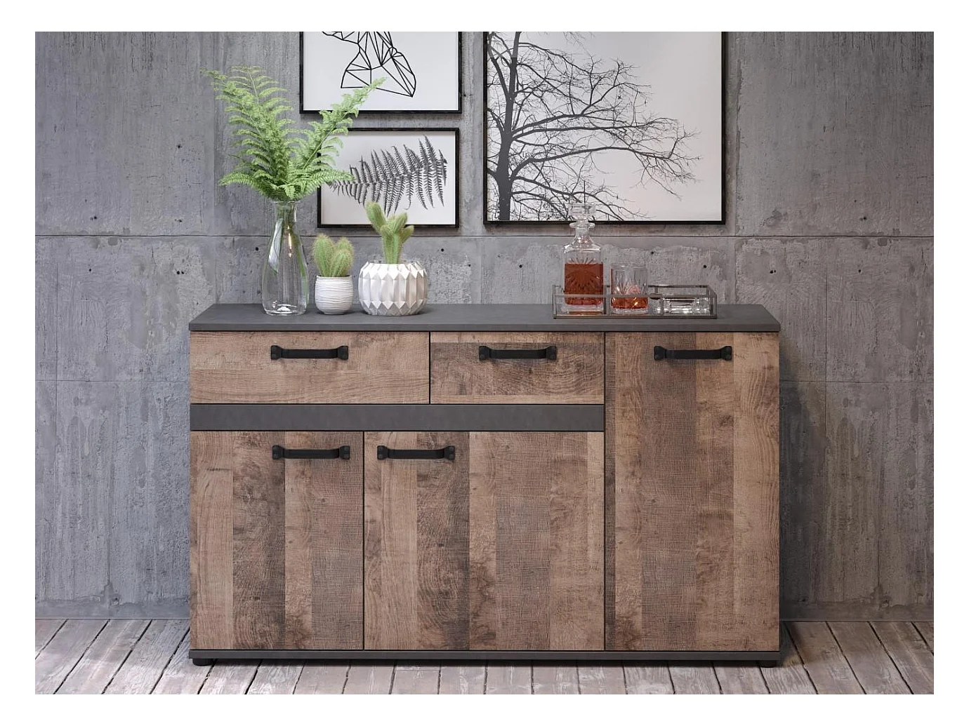 Buffet 3 deuren 2 laden bruin en grijs melamine Florence L 142 cm