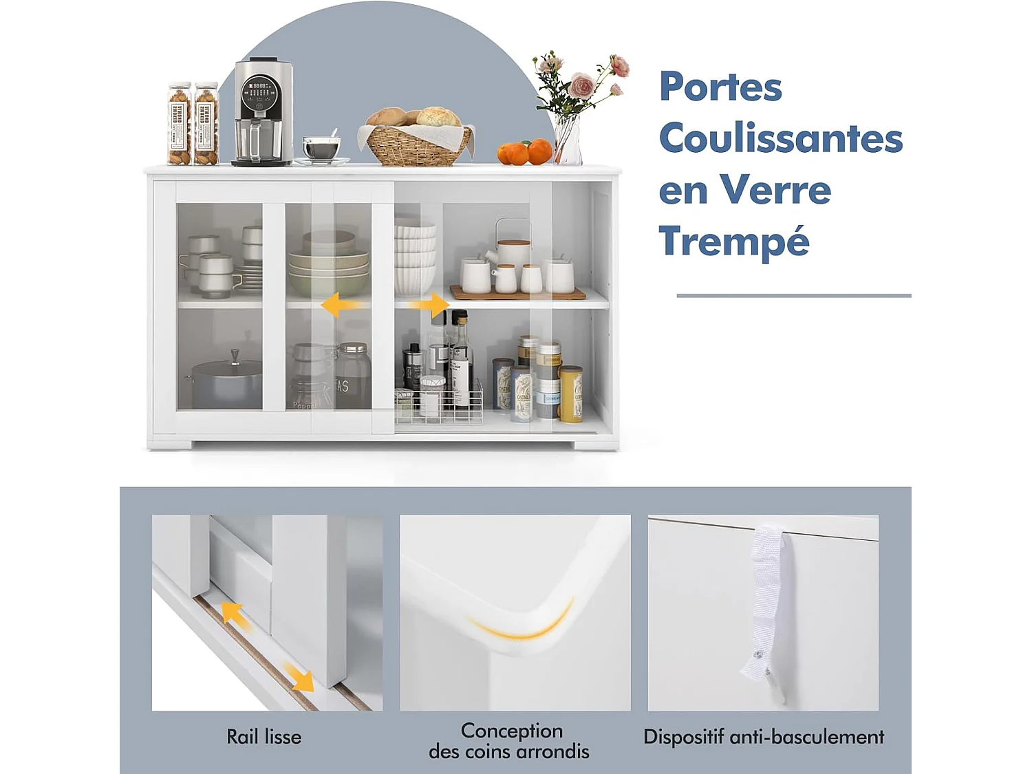 Wit dressoir, keukendressoir met 2 glazen deuren en 2 MDF-deuren, draaibaar aanrechtblad