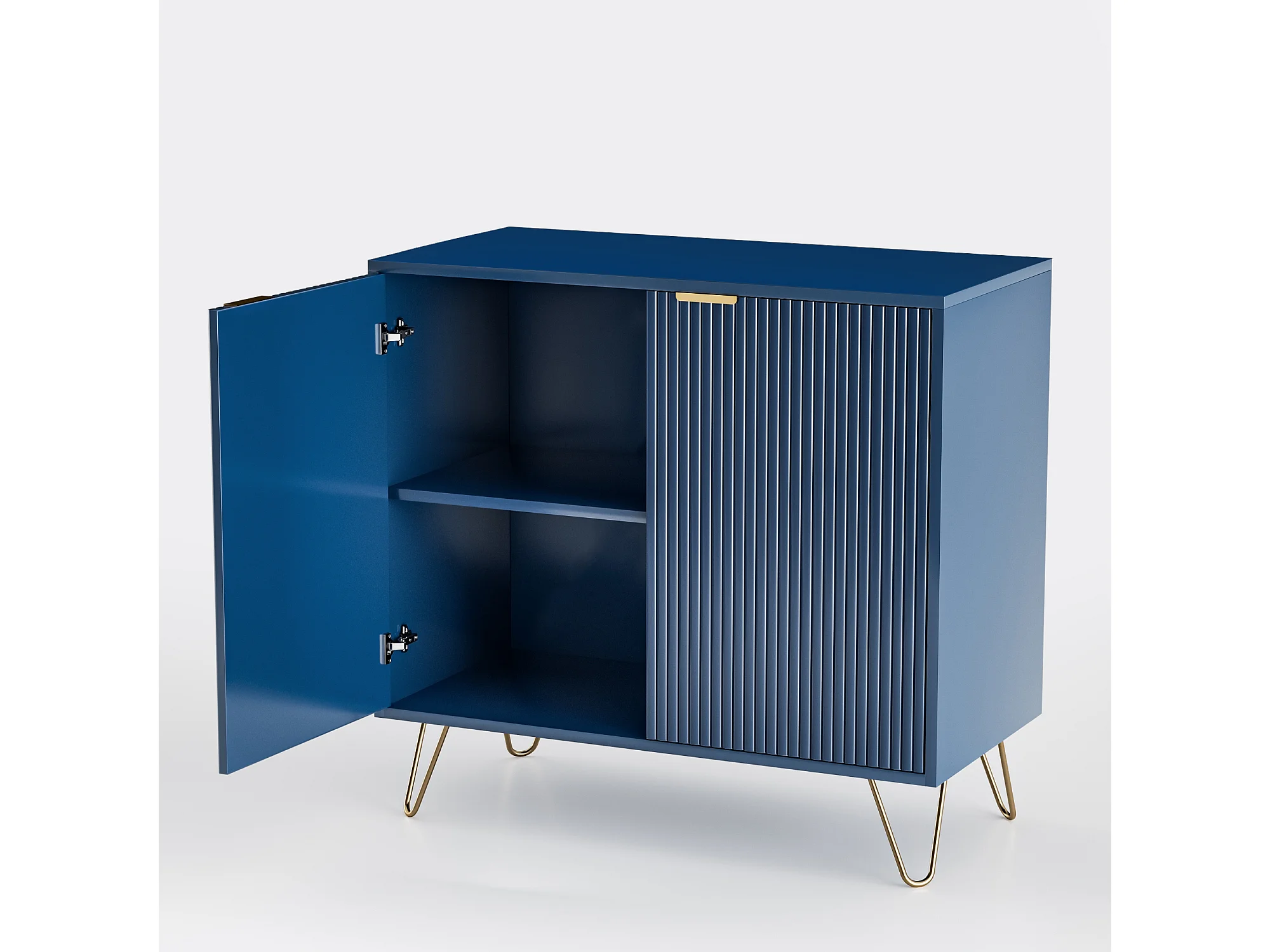 Buffet met 2 deuren, keukenbuffet met plank en metalen poten, voor woonkamer of eetkamer, blauw