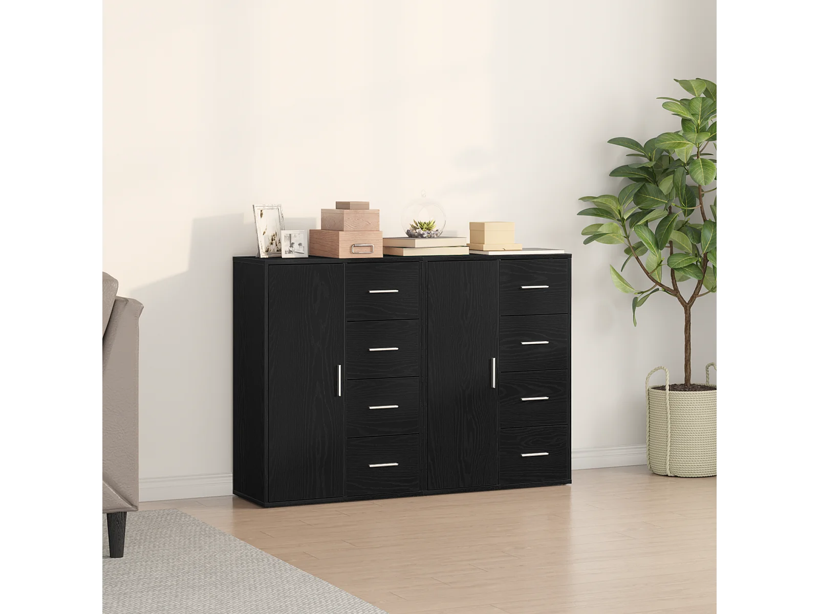 Buffet | Sideboard | Dressoir 2 pcs Zwart Eiken 60 x 31 x 84 cm Bewerkt hout