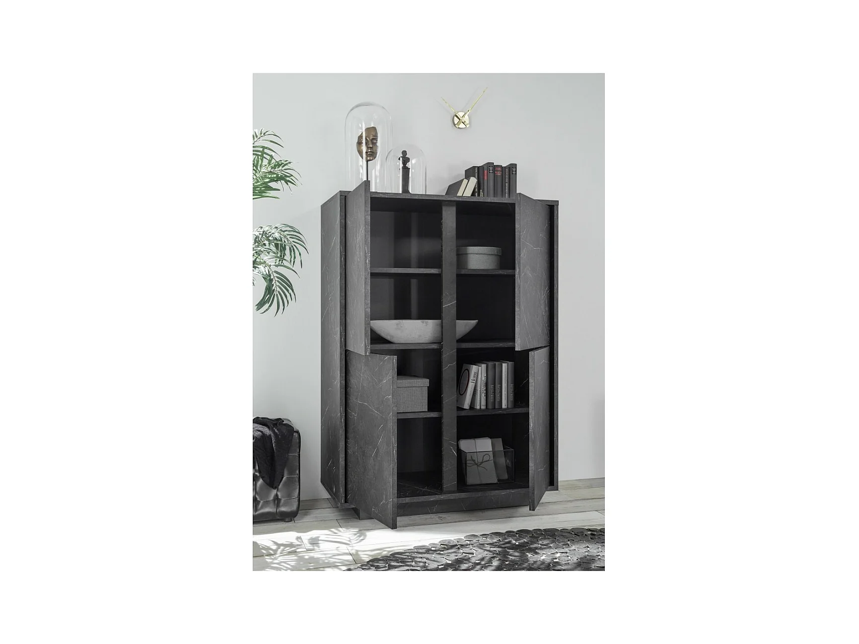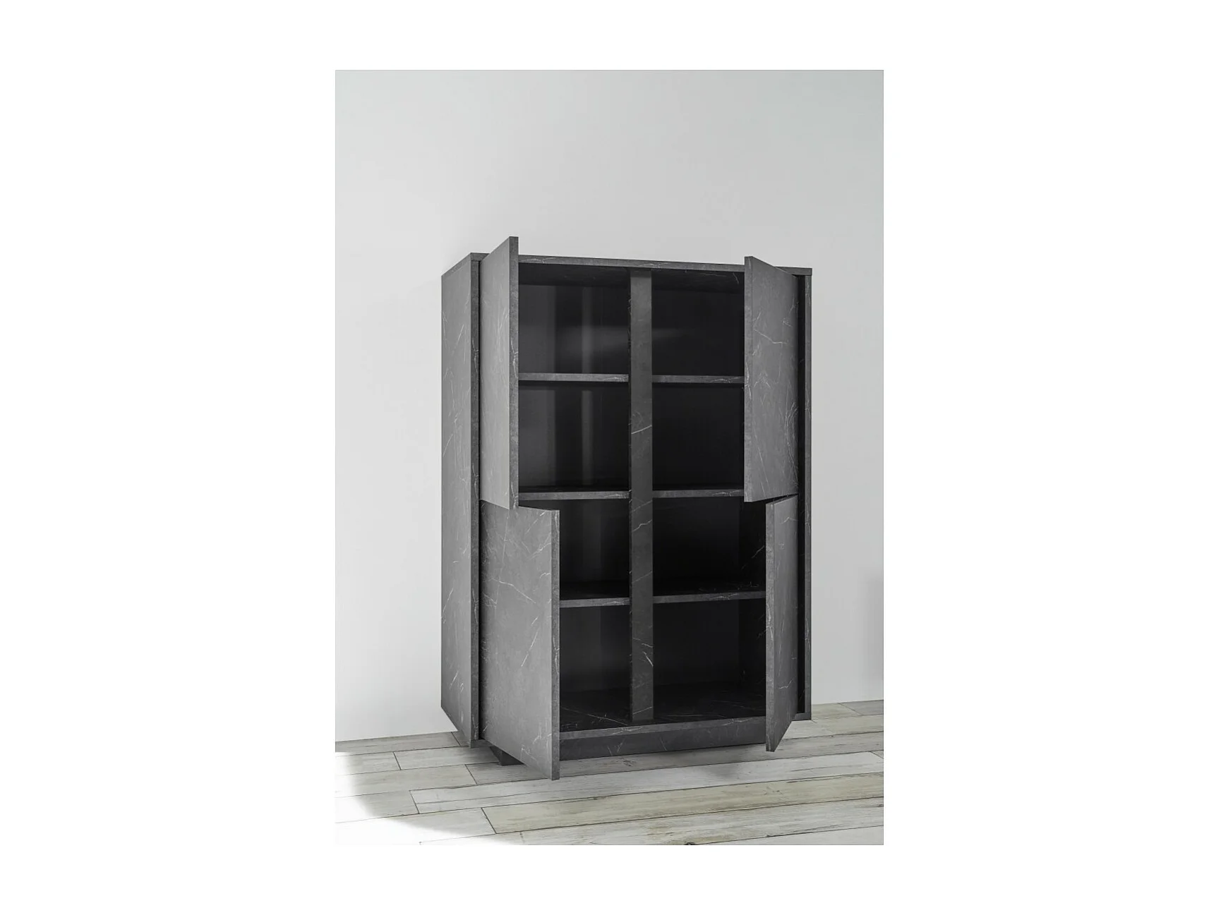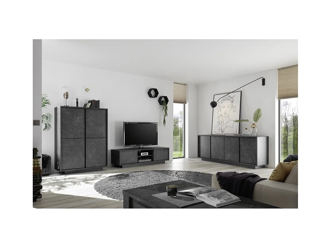 Buffetkast met 4 deuren, collectie COLOMARMO, in zwarte marmerlook, ideaal voor uw woonkamer of eetkamer
