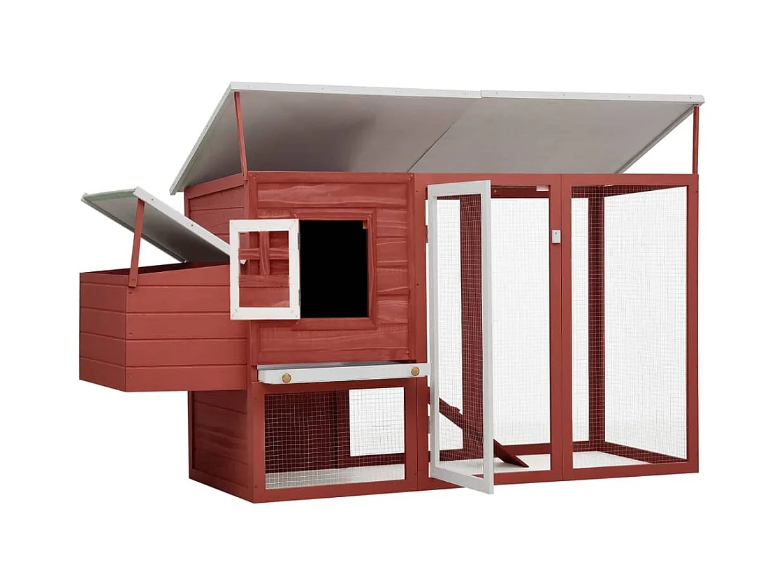 Kippenhok met nestkast Rood en wit Massief dennenhout