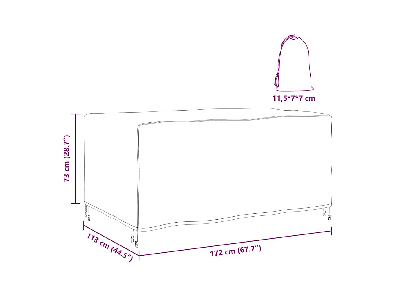 Buitenmeubelhoes Zwart 172 x 113 x 73 cm 600D
