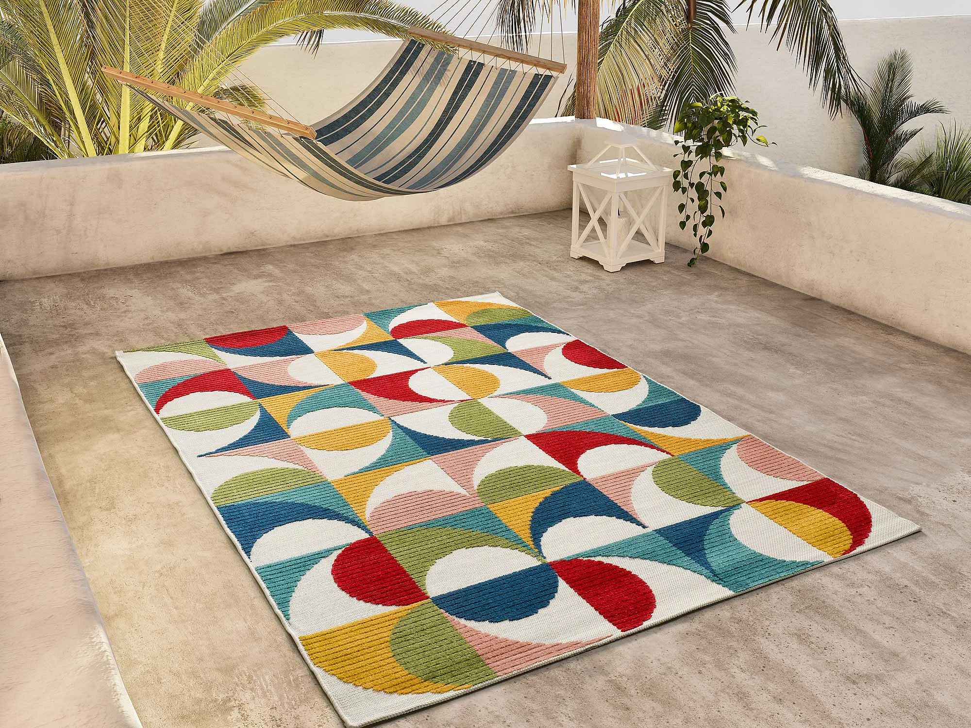 Buitentapijt - geometrisch met reliëf - veelkleurig - 80x150 cm - MILA