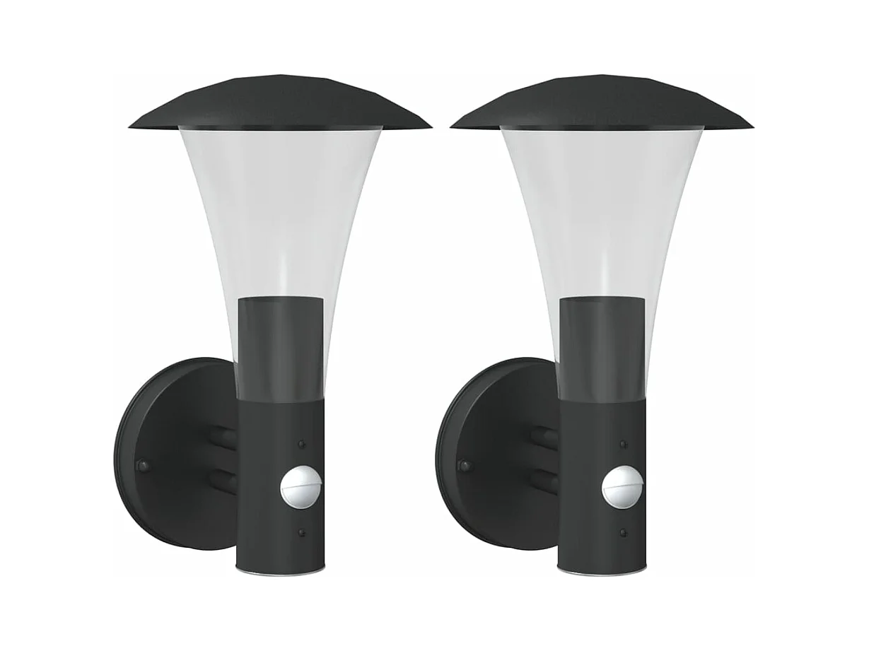 Buitenwandlampen 2 st met sensors roestvrijstaal zwart BE109456