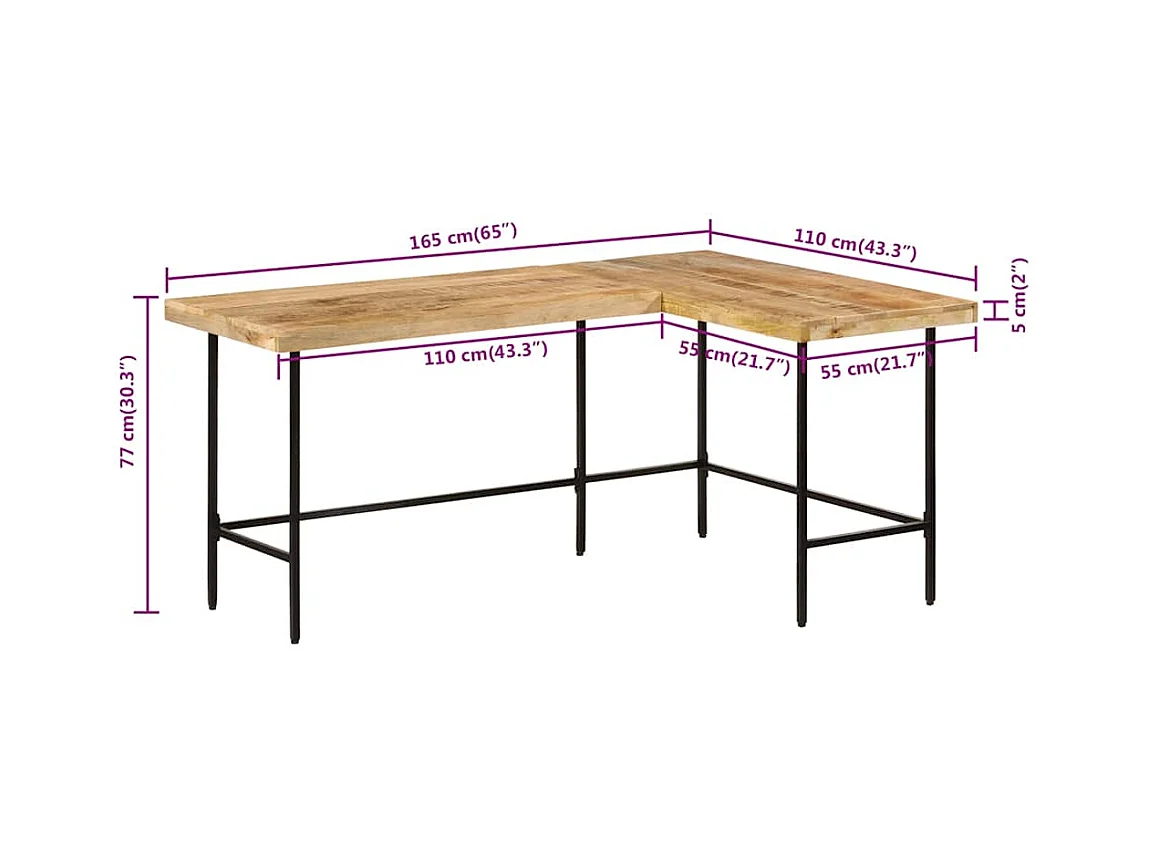 Bureau 165x110x77 cm massief mangohout en ijzer