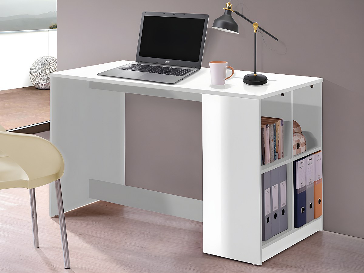 Bureau CYPRIEN met opbergruimte- 4 nissen - Kleur wit