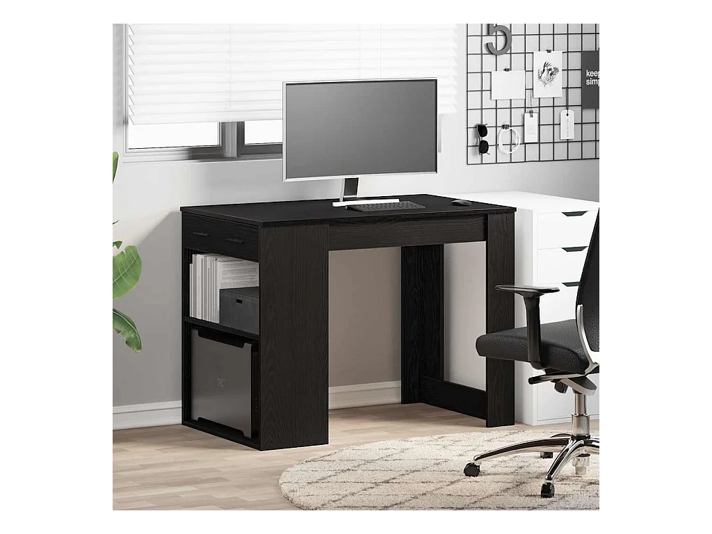 Bureau met schappen 102x50x117 cm zwart en eikenkleurig BE602890