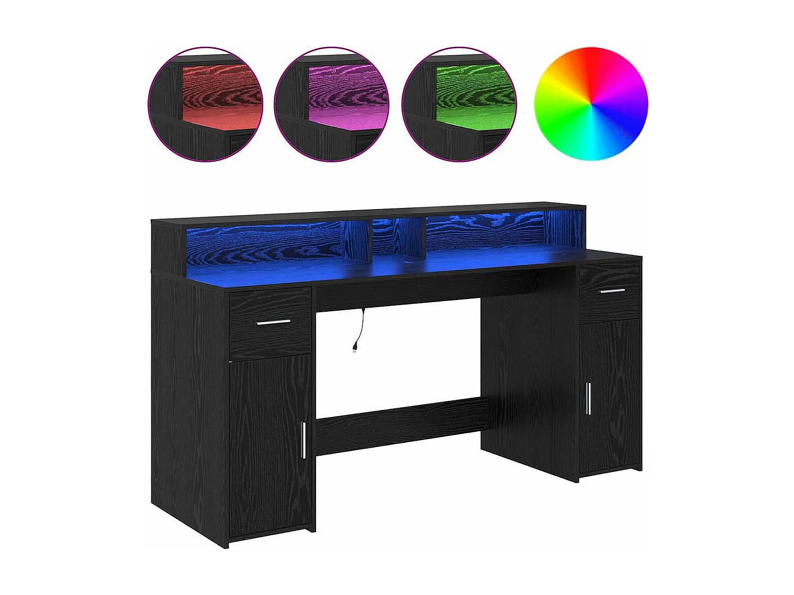 Bureau met LED-verlichting 140x55x91 cm bewerkt hout zwart