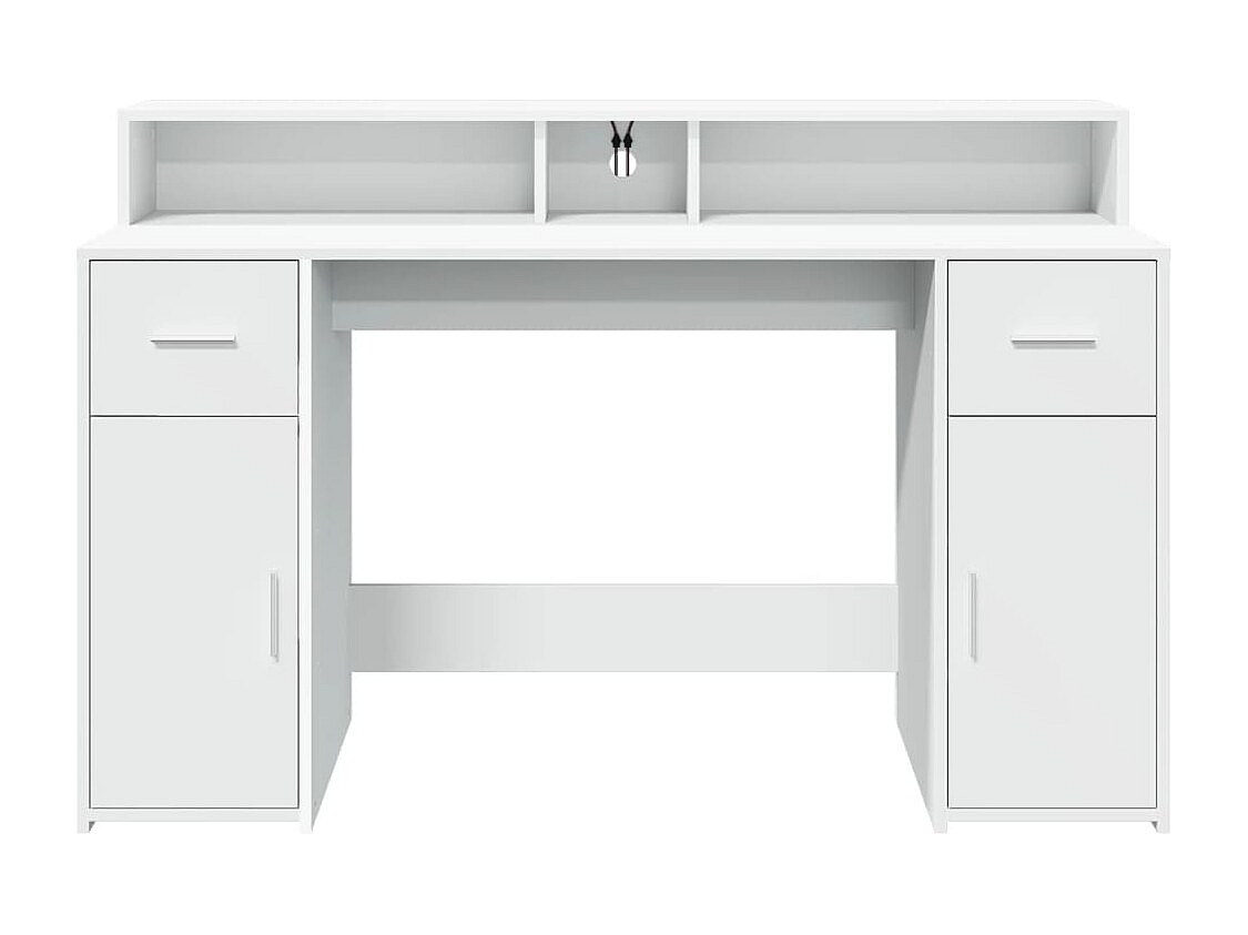 Bureau met LED-verlichting 140x55x91 cm bewerkt hout wit
