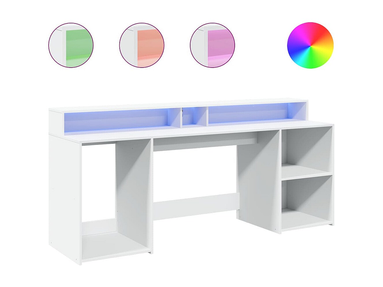Bureau met LED-verlichting 200x104x91 cm bewerkt hout wit