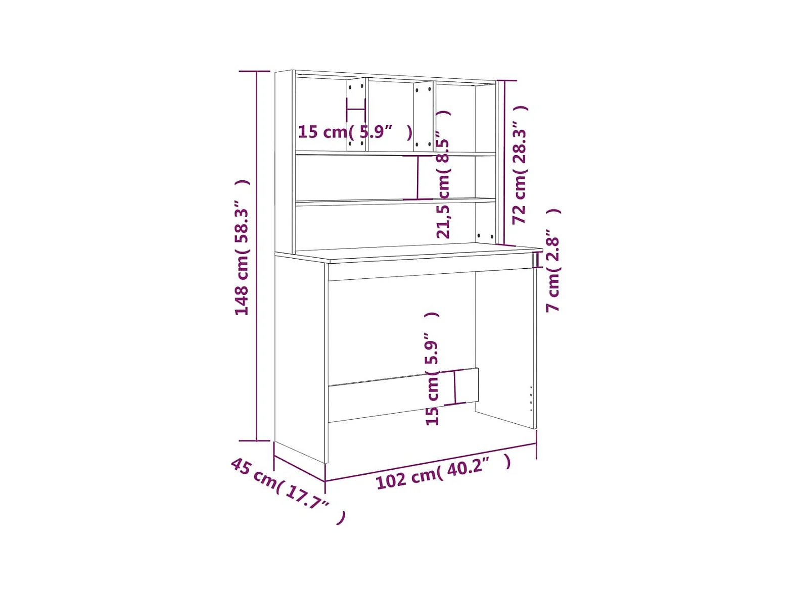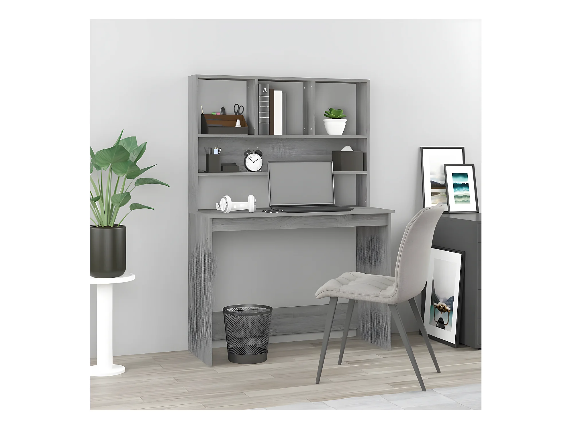 Bureau met schappen 102x45x148 cm bewerkt hout grijs sonoma