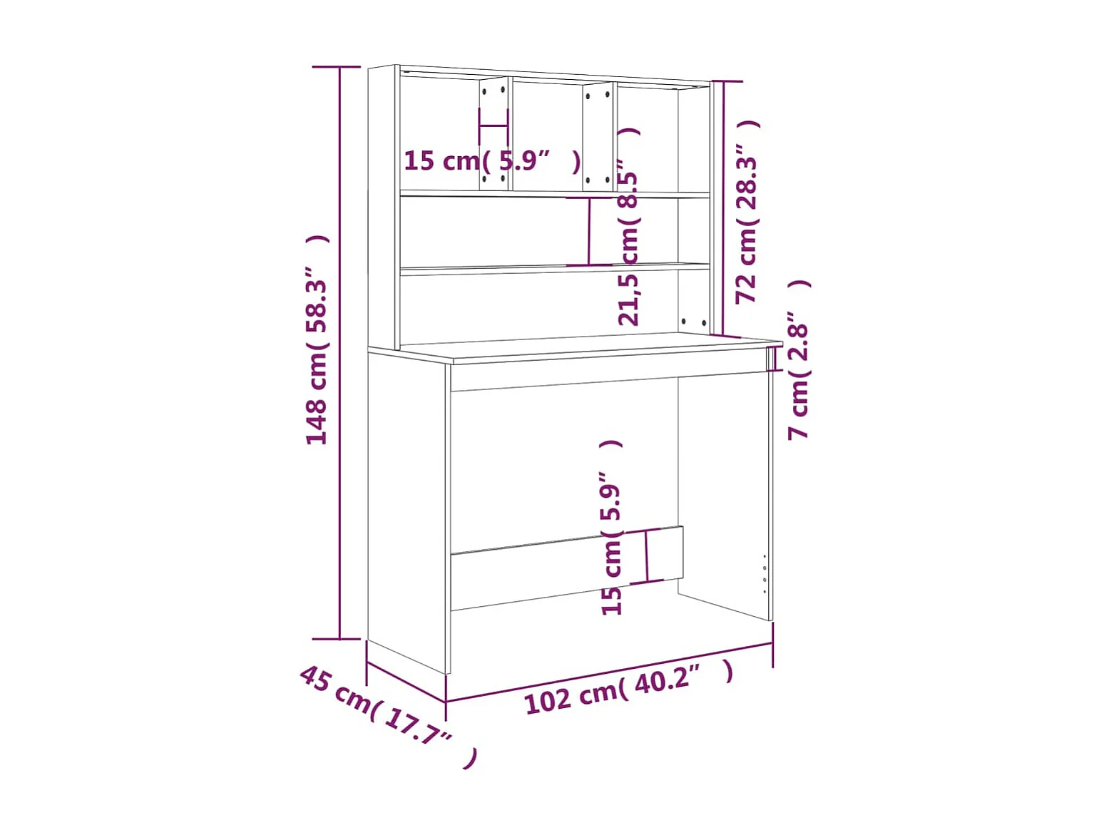 Bureau met schappen 102x45x148 cm bewerkt hout hoogglans wit