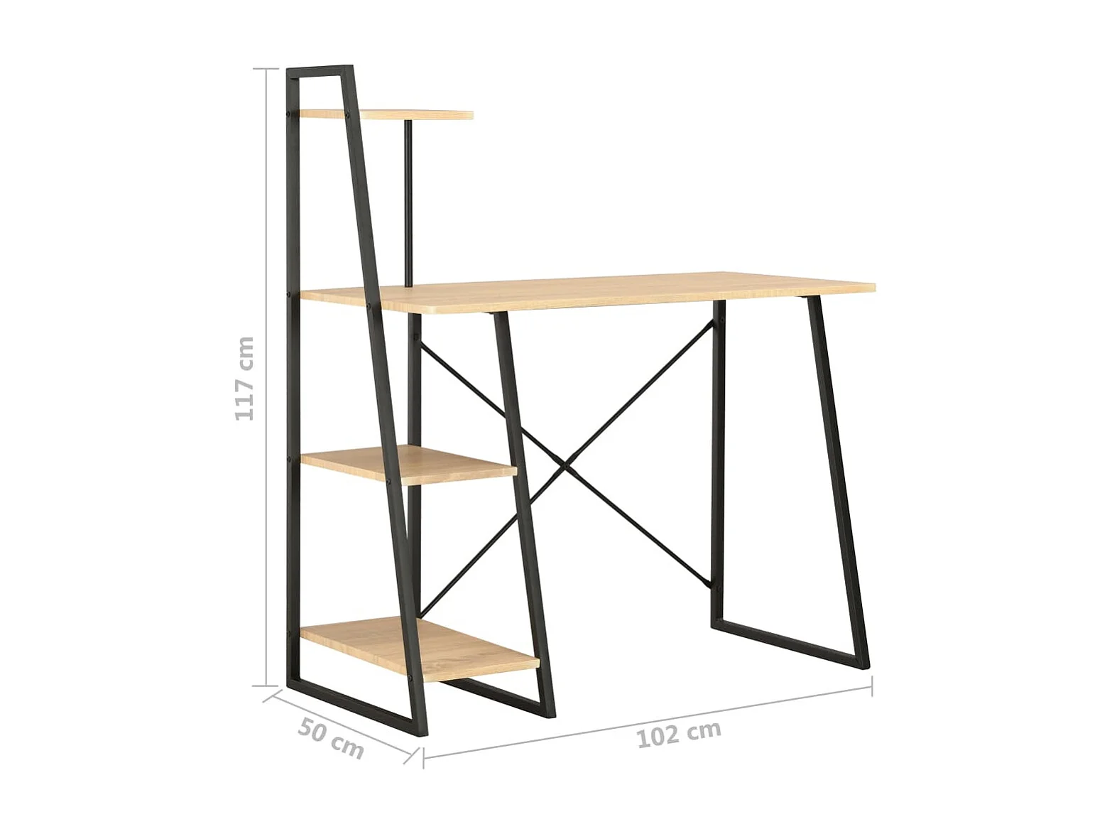 Bureau met schappen 102x50x117 cm zwart en eikenkleurig