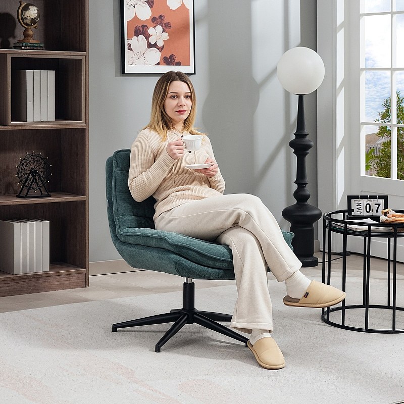 Bureaustoel, brede zitting, in hoogte verstelbaar, zitting op maat, dubbellaags gewatteerd, draaibaar, groen linnen, voor thuiskantoor
