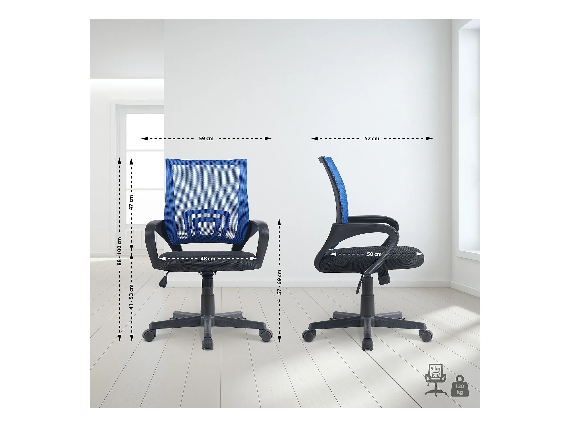 Jessi kantoorstoel blauw, wit.