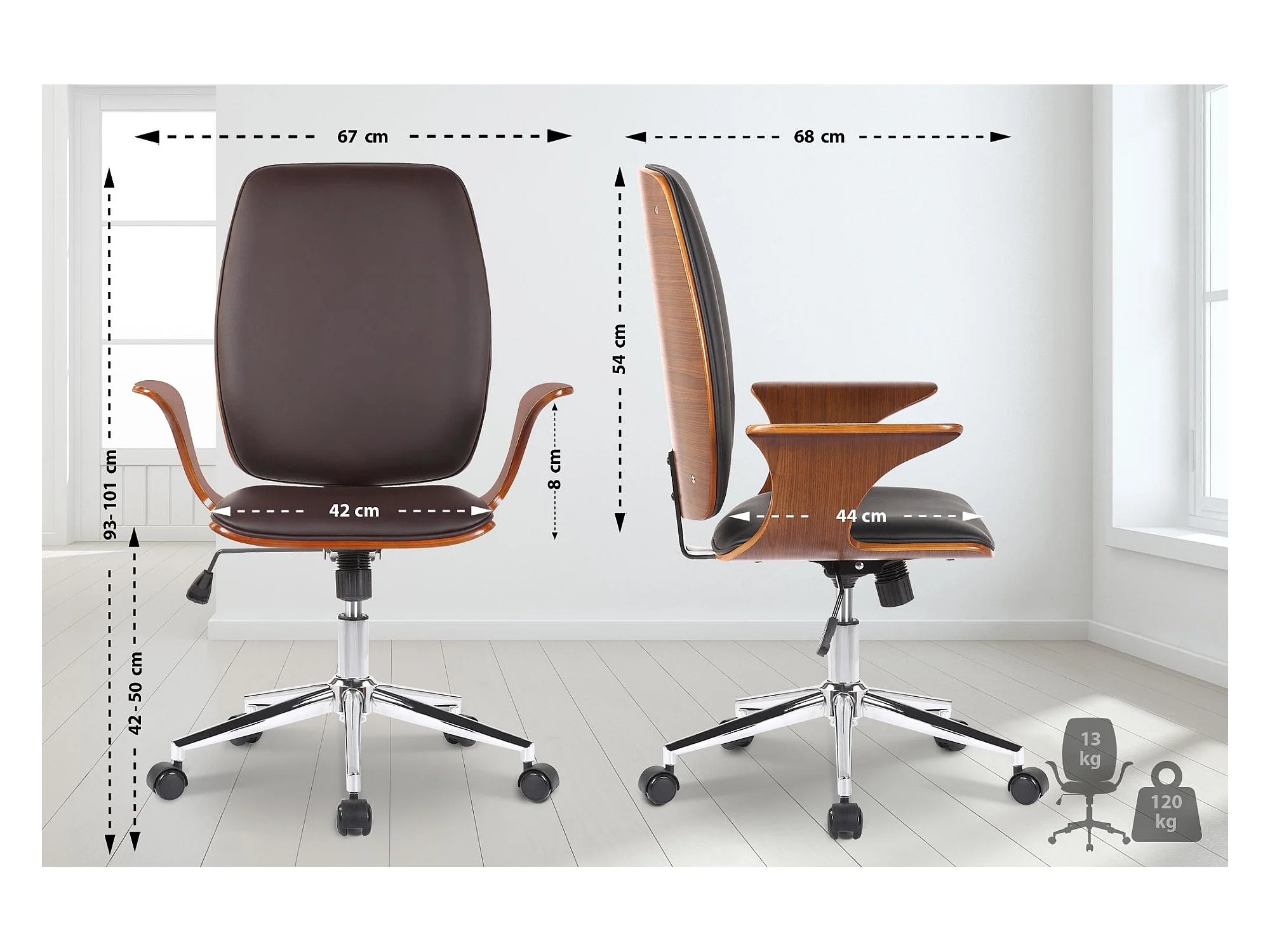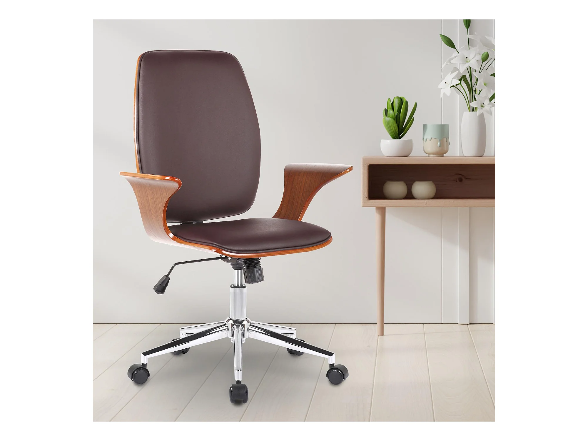 Bureaustoel - Kunstleer & Metaal in chroomoptiek - walnoot/bruin - Burbank