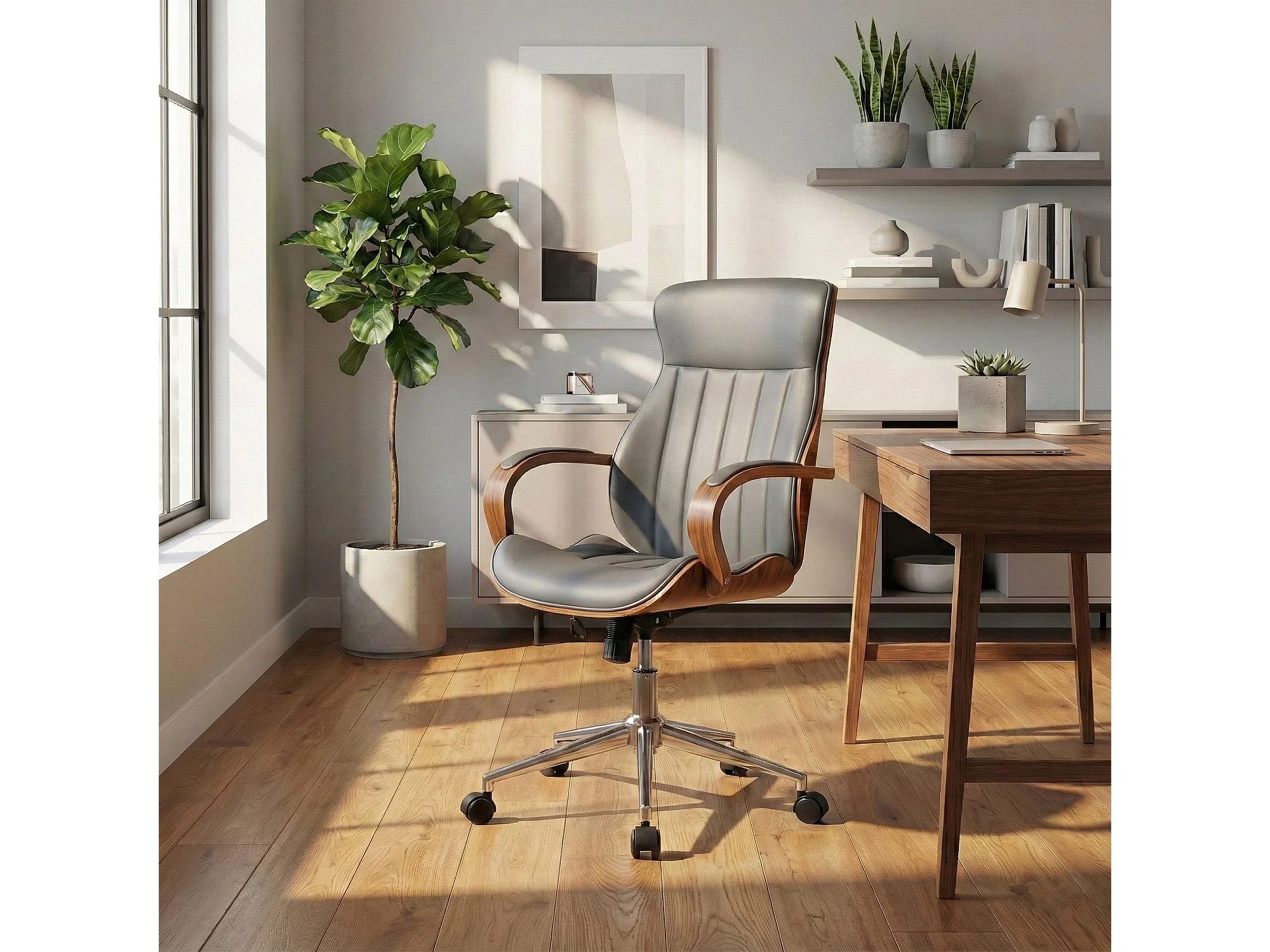 Bureaustoel - Kunstleer - walnoot/grijs - Melilla