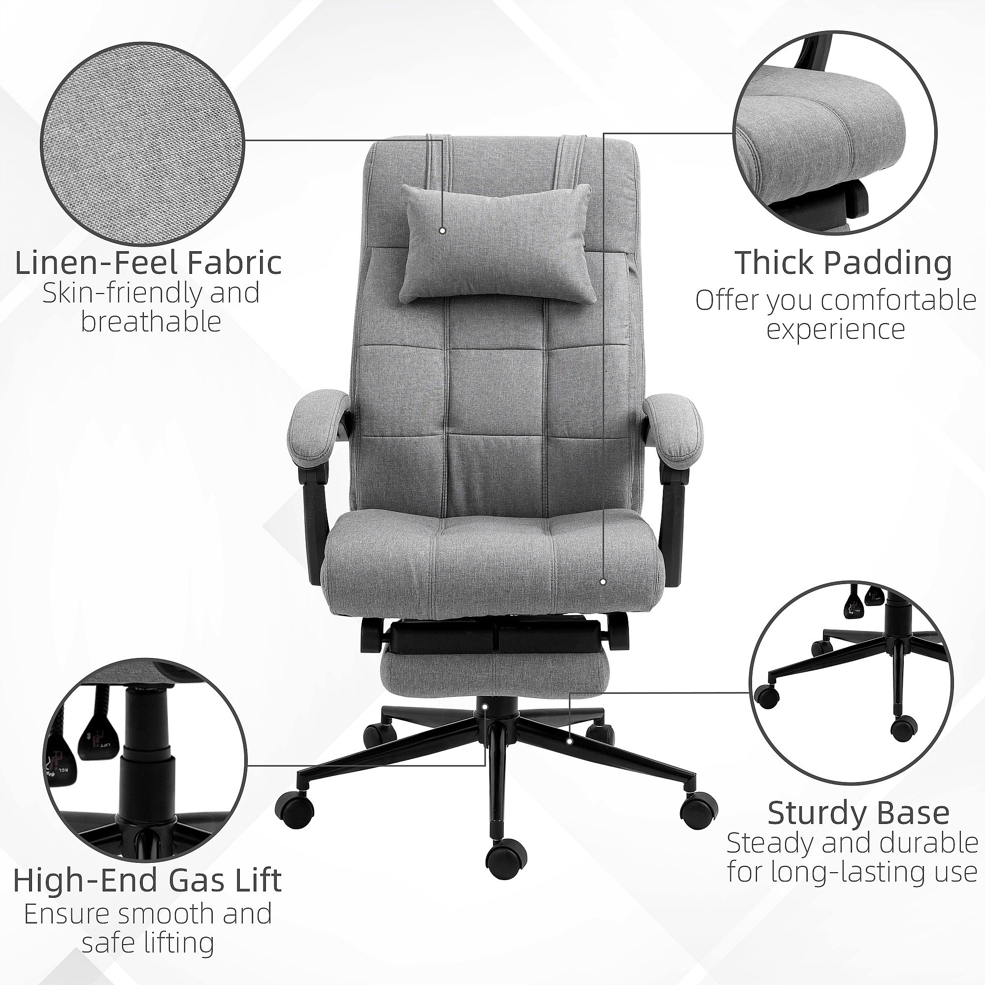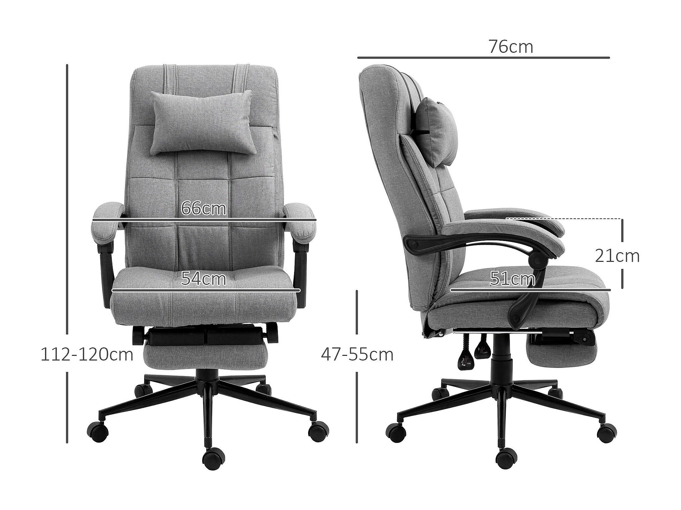 Bureaustoel met hoofdsteun en armleuningen, in hoogte verstelbaar, draaibaar met voetensteun, linnen, ergonomisch, 66x70x116-124 cm