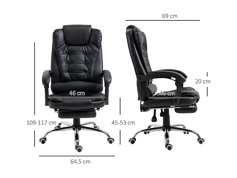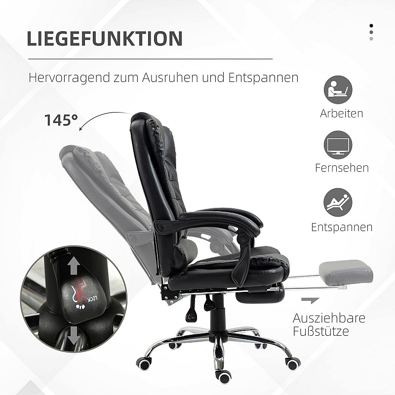 Bureaustoel met voetensteun, verstelbare rugleuning en verstelbare hoogte, draaibaar, comfortabele stoel voor kantoor of thuiskantoor, zwart