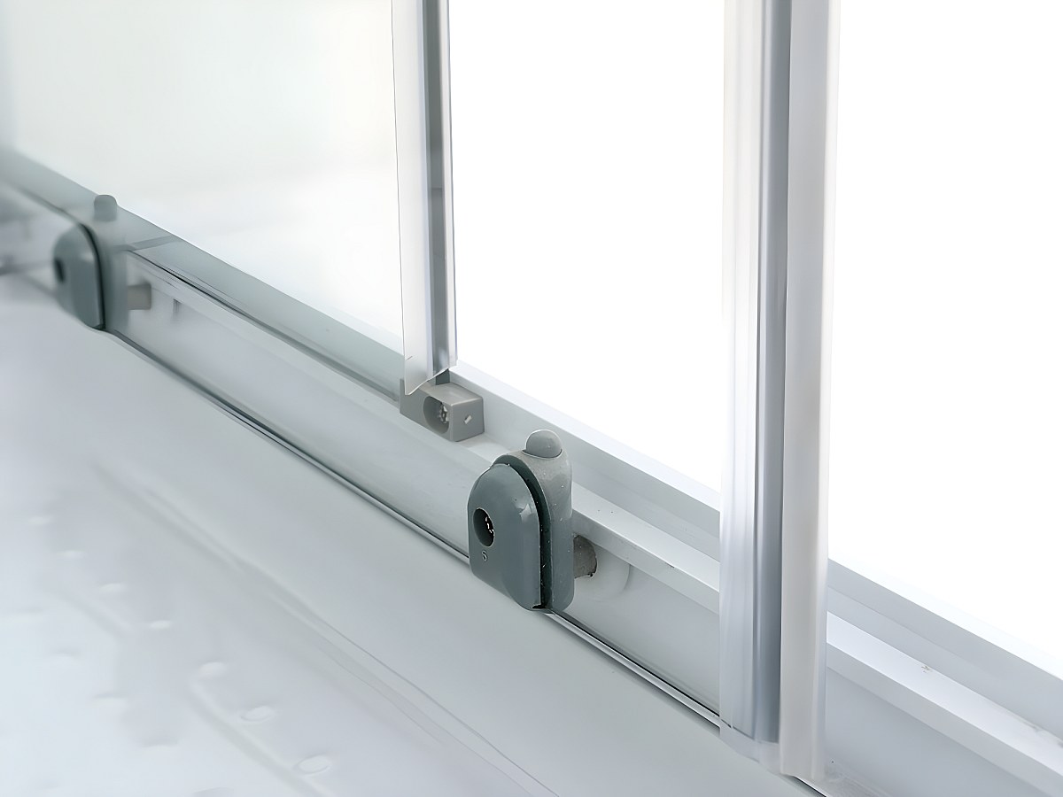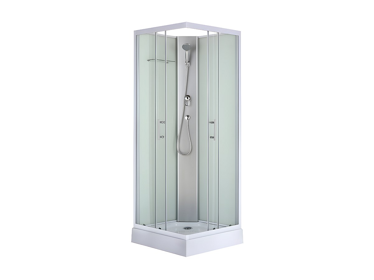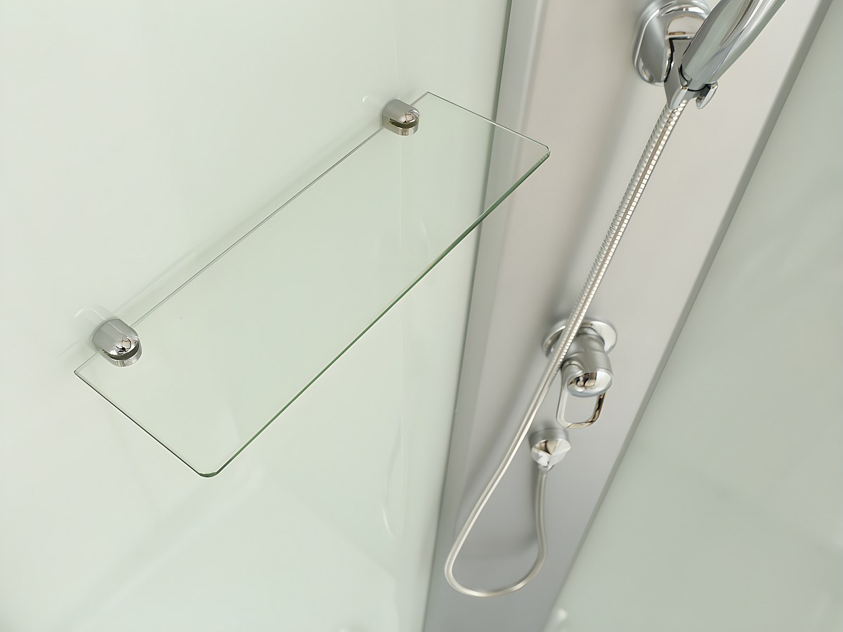 - Deuren van gehard transparant glas van 4 mm dik: toegang via schuifdeuren waardoor u buiten de douchecabine ruimte bespaart.