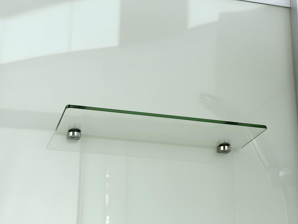 - Structuur van gehard glas: wit voor de achterwanden en transparant voor de deuren die voor een elegant design zorgen
