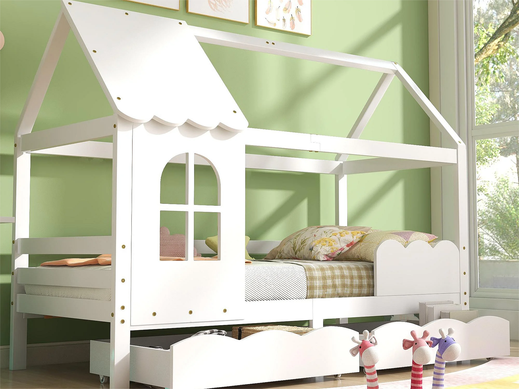 Cabinebed - 90 x 200 cm - massief hout - lattenbodem - wit