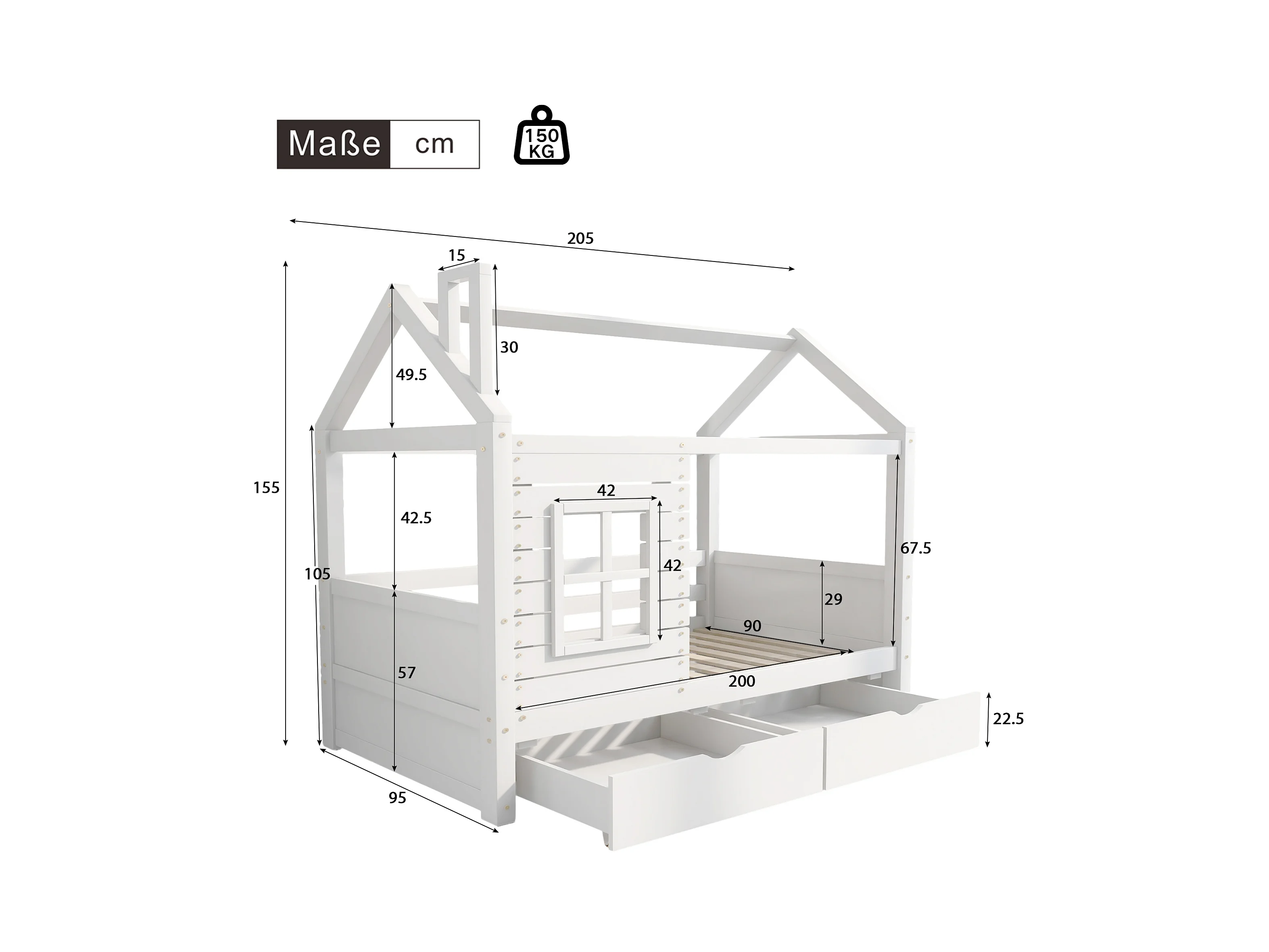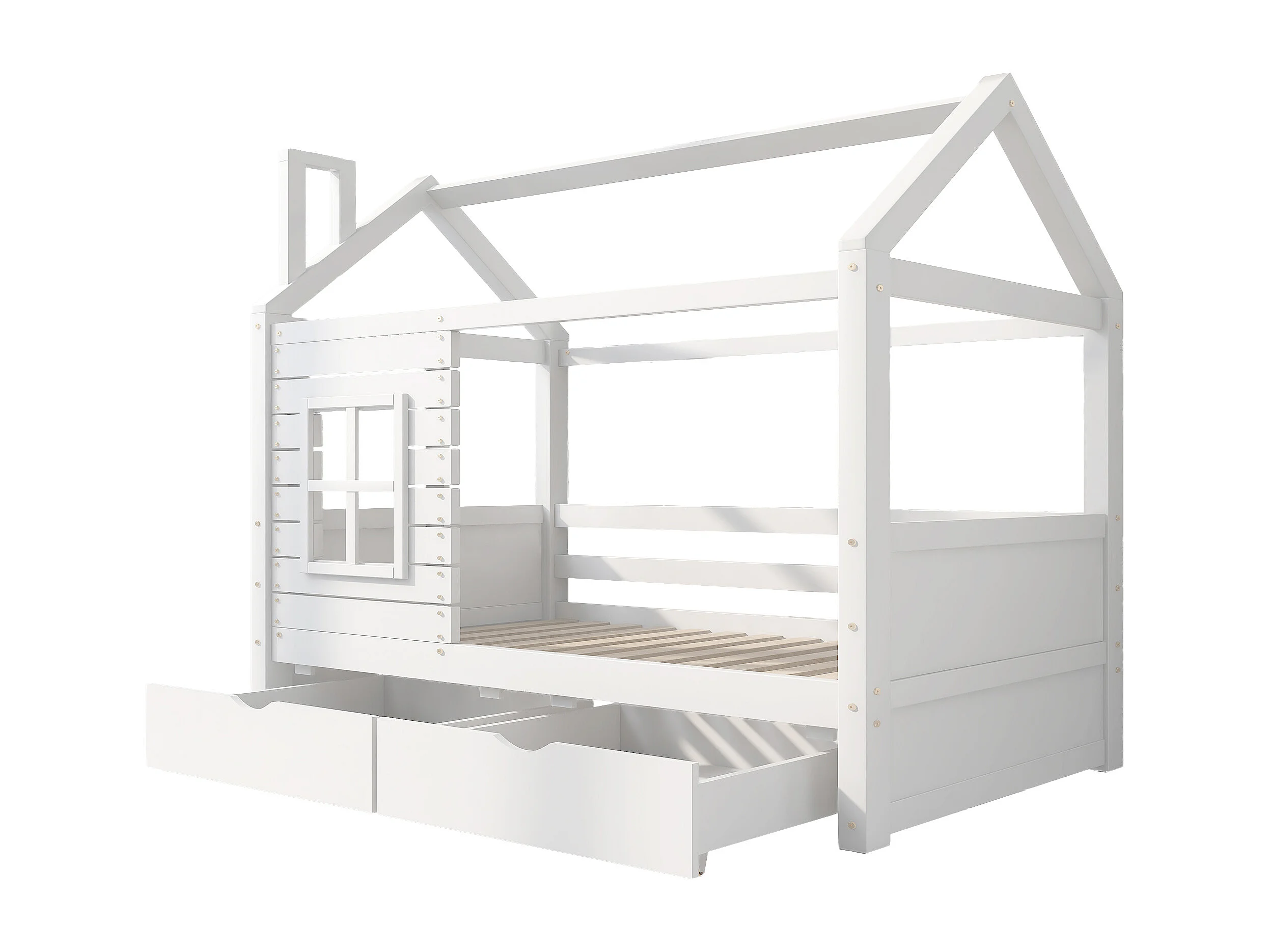 Kajuitbed 90x200 cm met 2 lades - huisvormig - massief hout - Wit