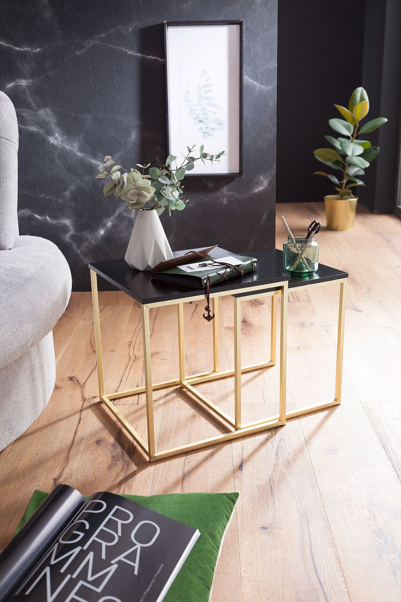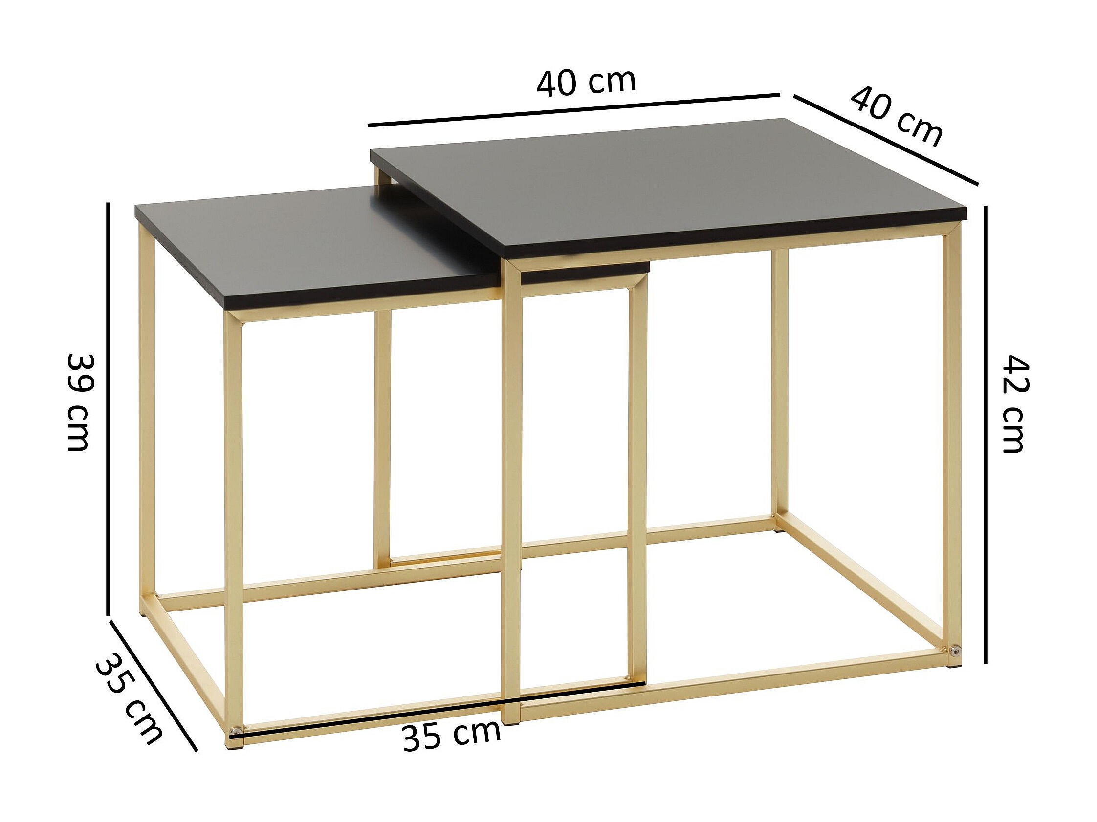CALA zwart / goud bijzettafel MDF / metaal | Salontafel set van 2 tafels | Kleine salontafel | Metalen tafel met houten plaat | Opbergtafel modern