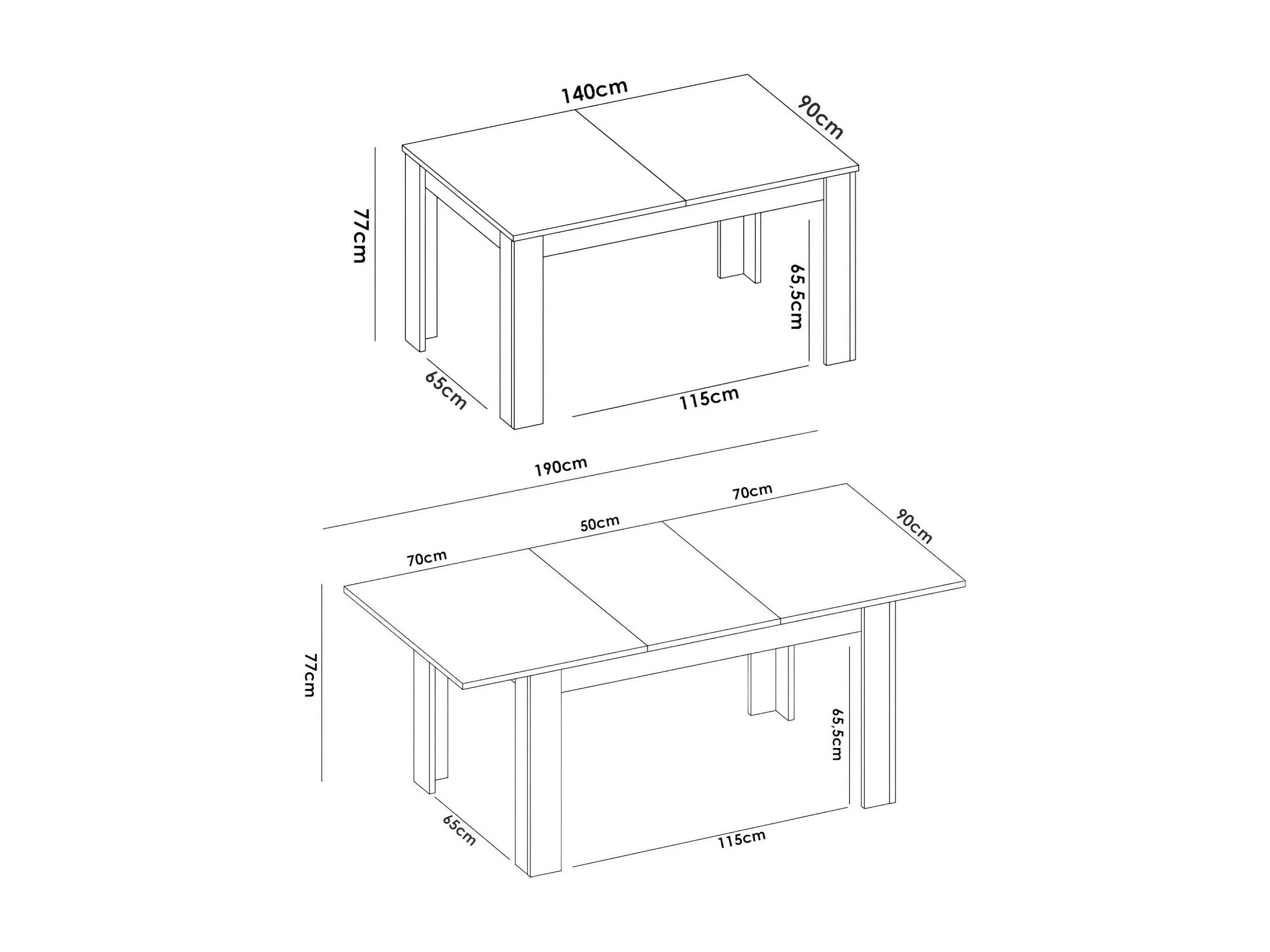 Tiroz uitschuifbare eettafel-Kleur Natuurlijk-Steun 4 voet-Verlengsnoeren -Uitschuifbare breedte