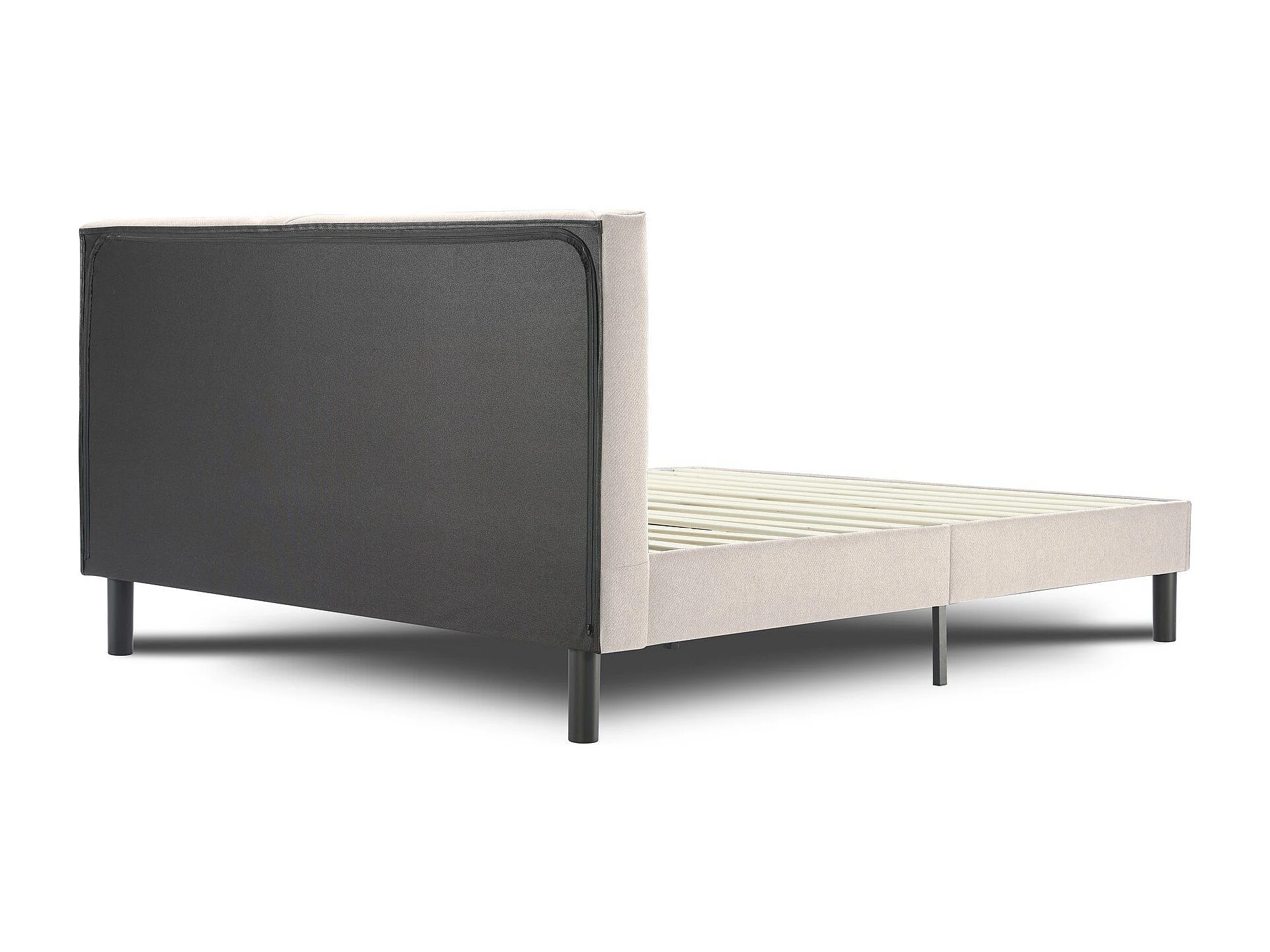 Caldes tweepersoonsbed, Gestoffeerd stoffen bed met hoofdbord, Houten lattenbodem, geschikt voor matras 160x190, Beige