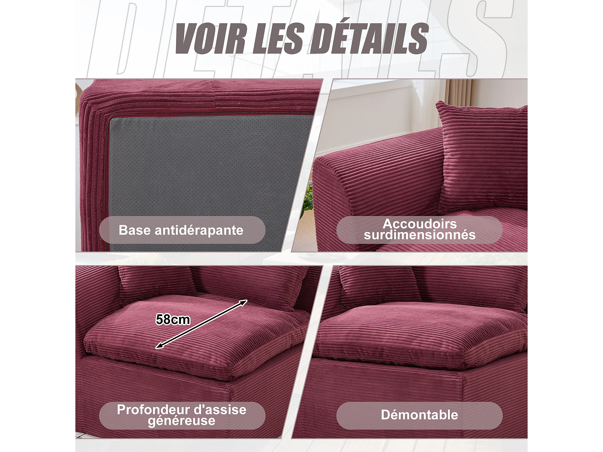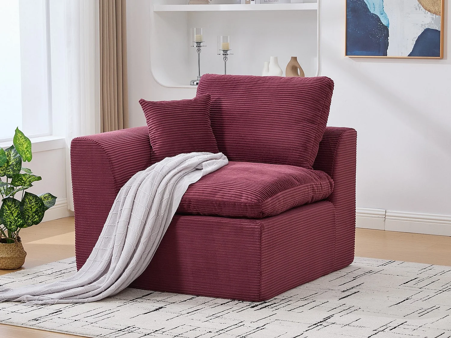 Câlin - Modulaire 1-Zits Bank + Bijzetbanken in Ribcord - 2 Ergonomische Kussens Inbegrepen - Modulaire Woonkamerset