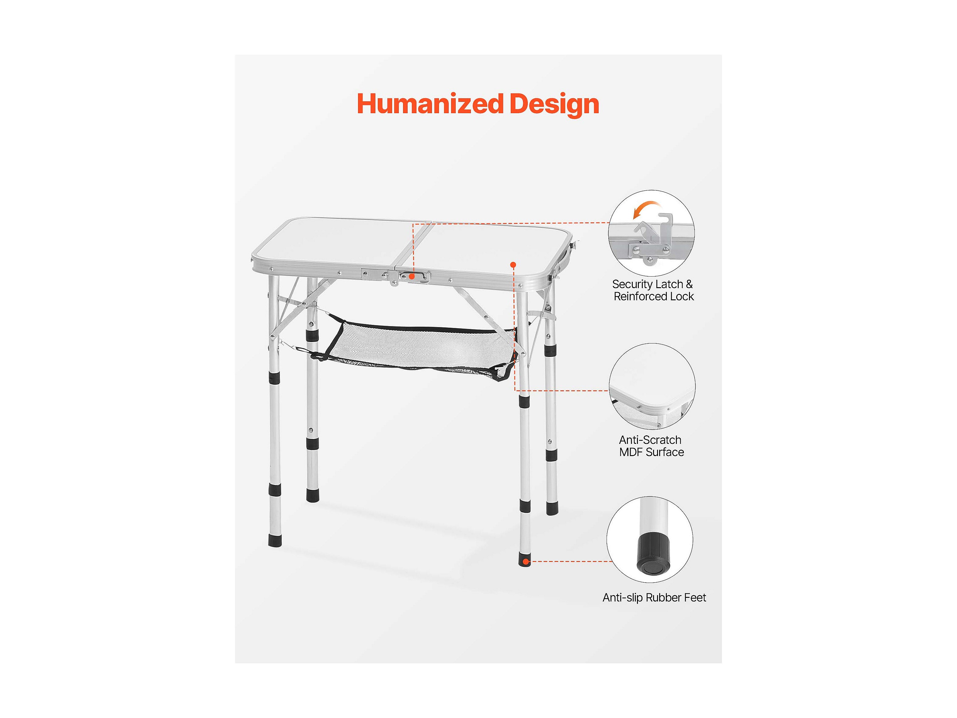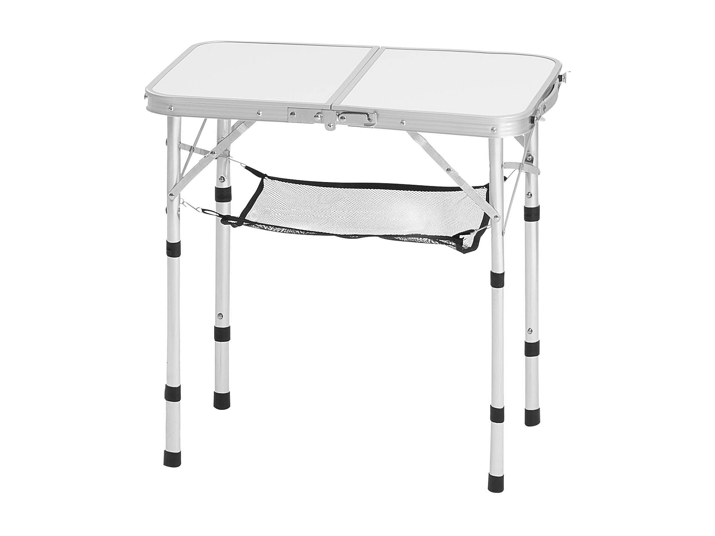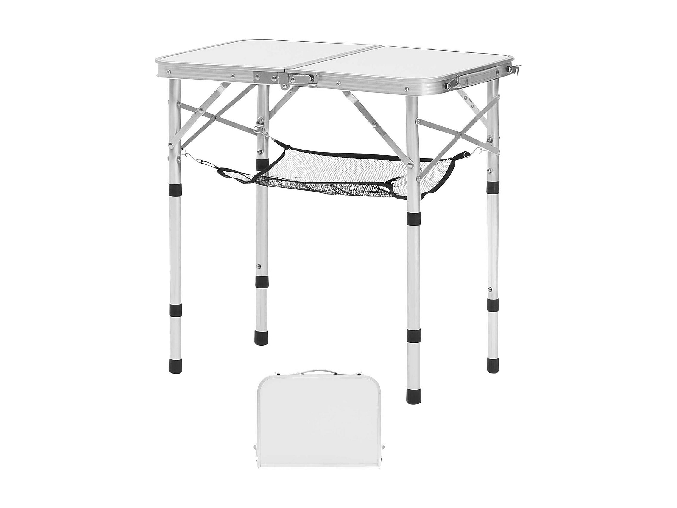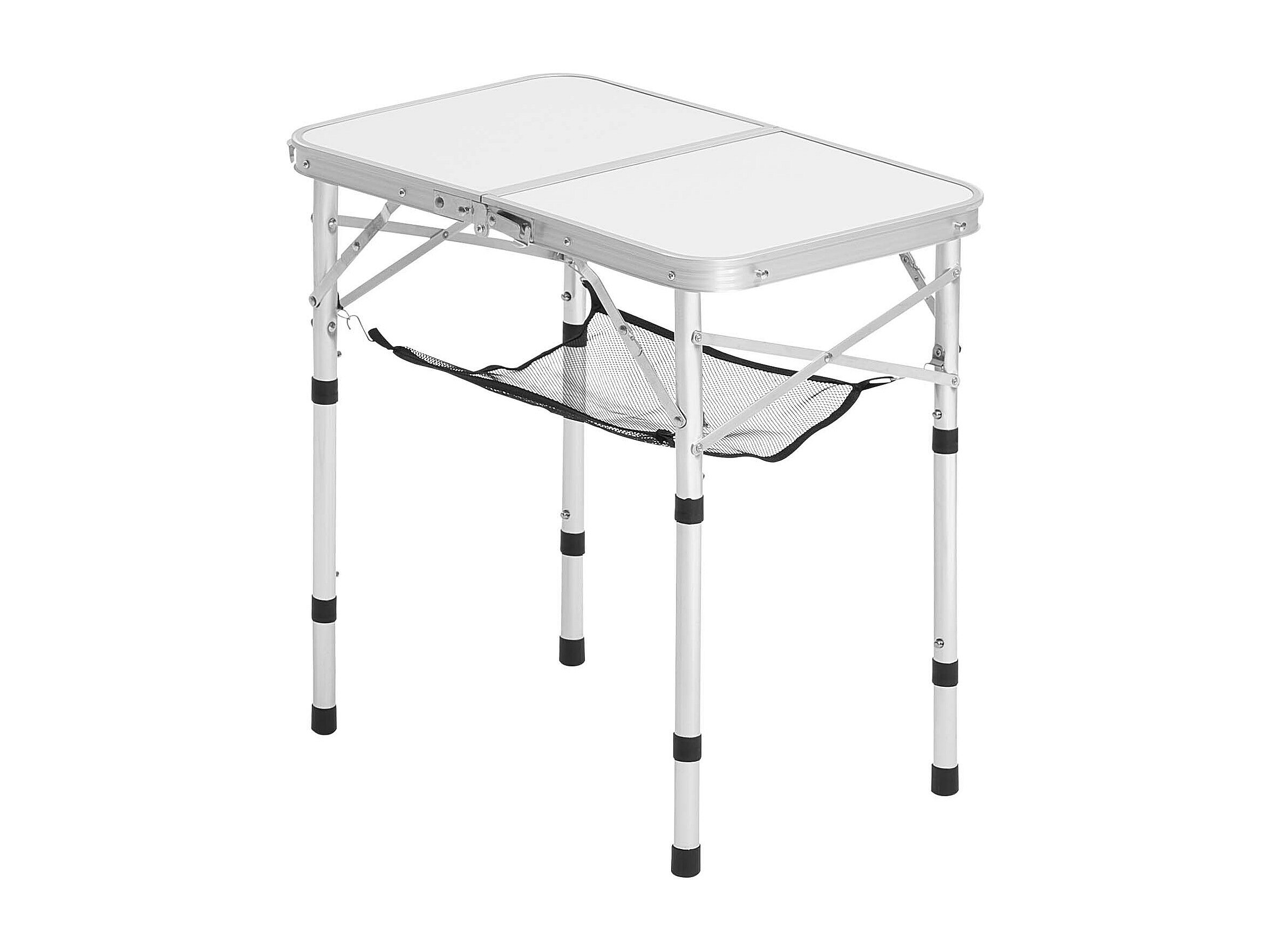 Campingtafel SucceBuy Opvouwbaar 60x40 cm, Licht en Compact Draagbaar Bijzettafeltje, van Aluminium MDF, Hoogte Verstelbaar, voor Picknick, Zilver