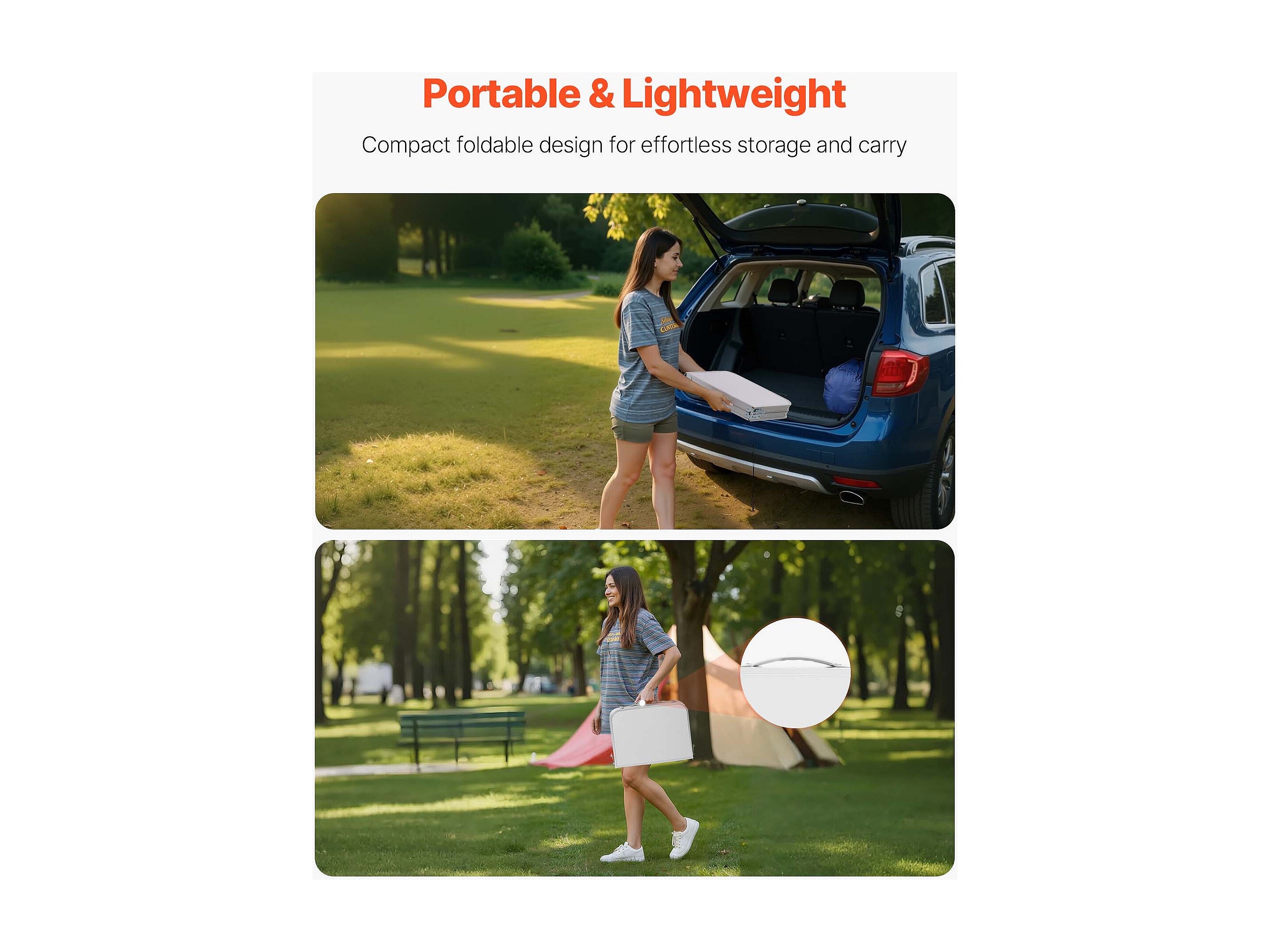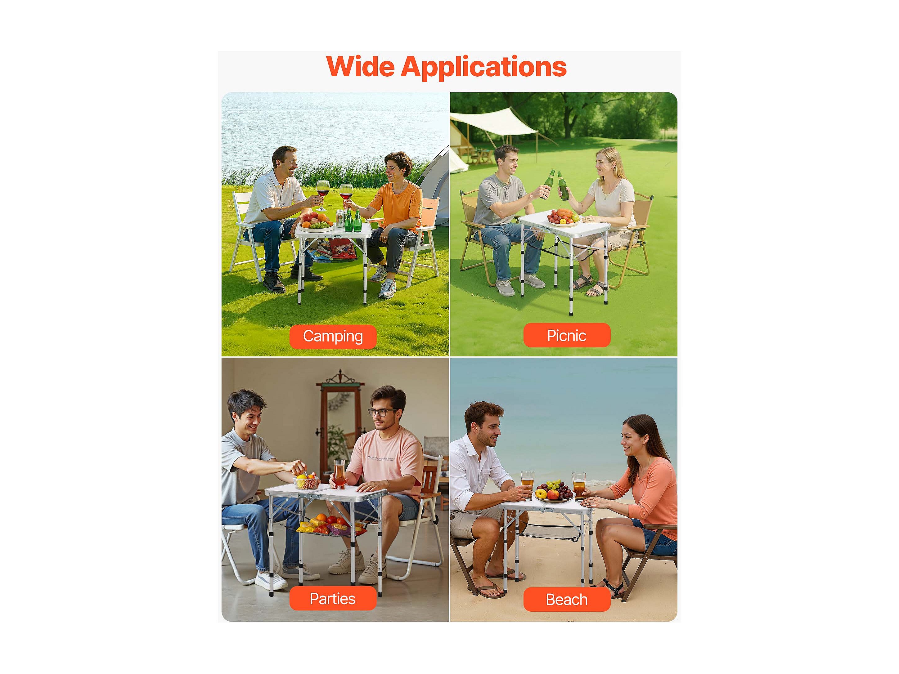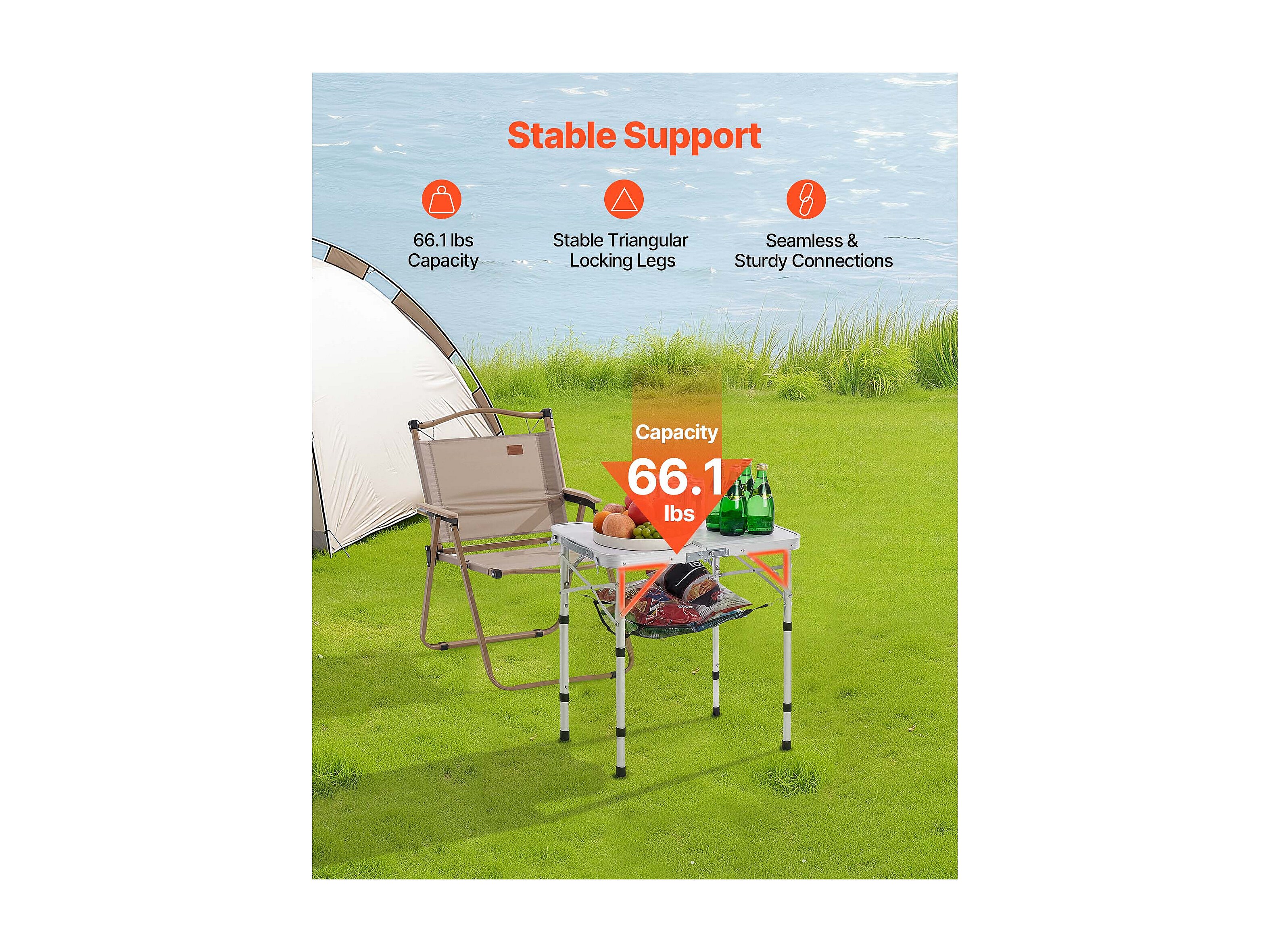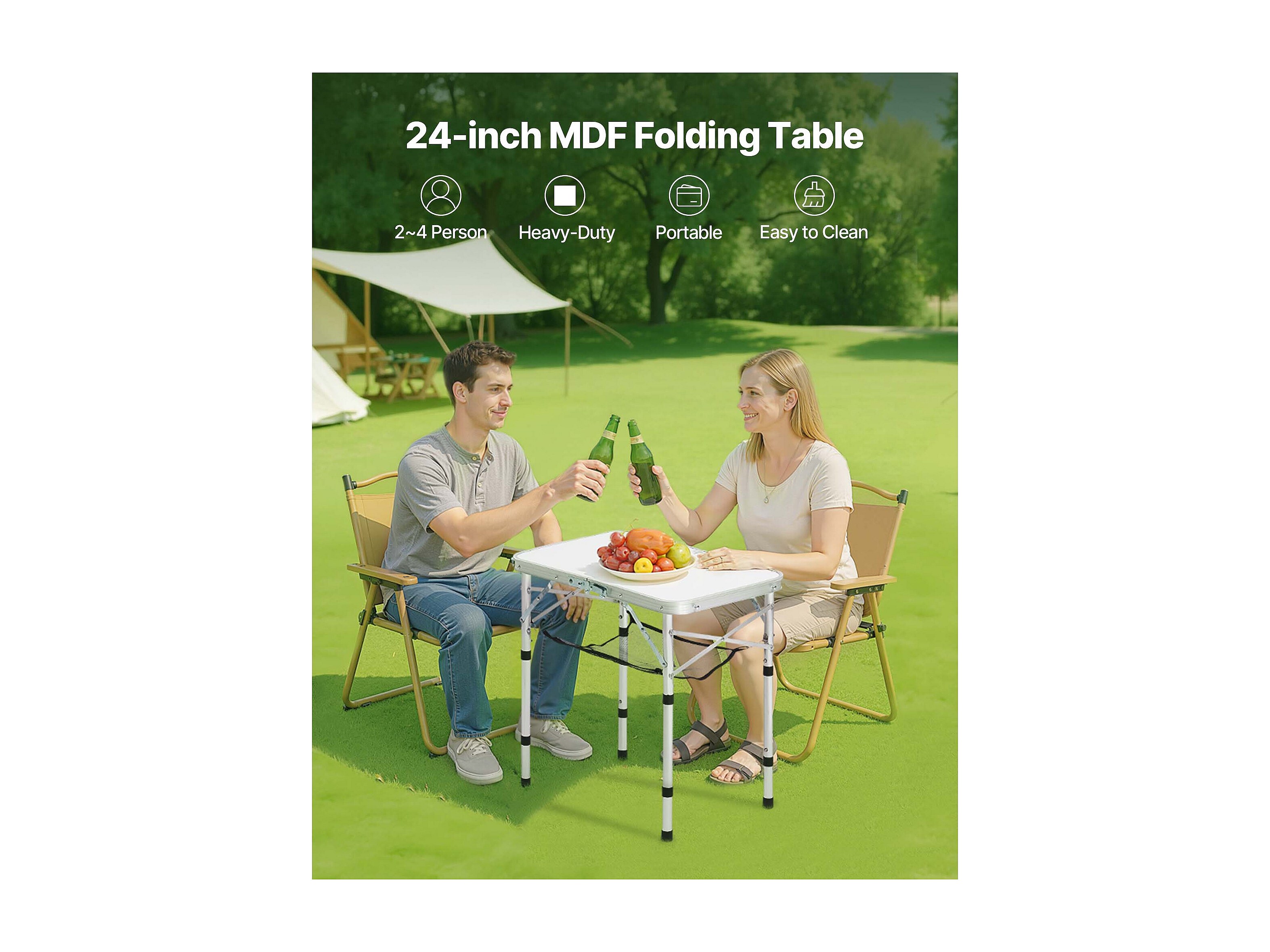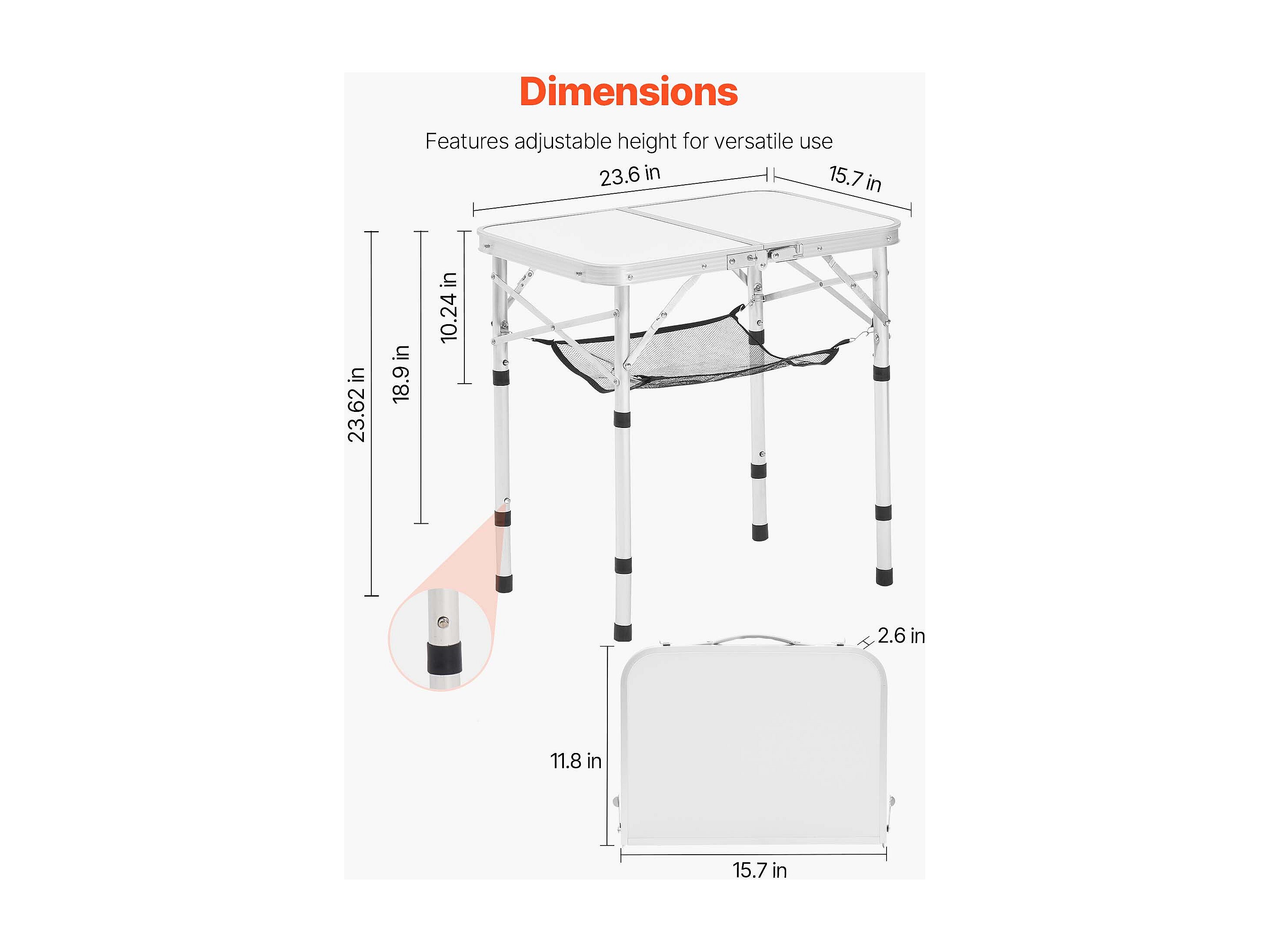 Campingtafel SucceBuy Opvouwbaar 60x40 cm, Licht en Compact Draagbaar Bijzettafeltje, van Aluminium MDF, Hoogte Verstelbaar, voor Picknick, Zilver
