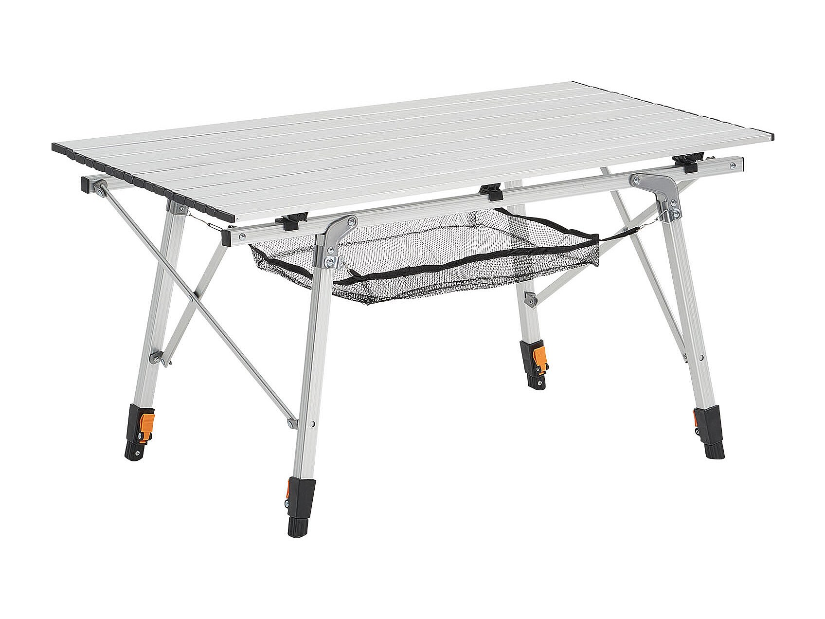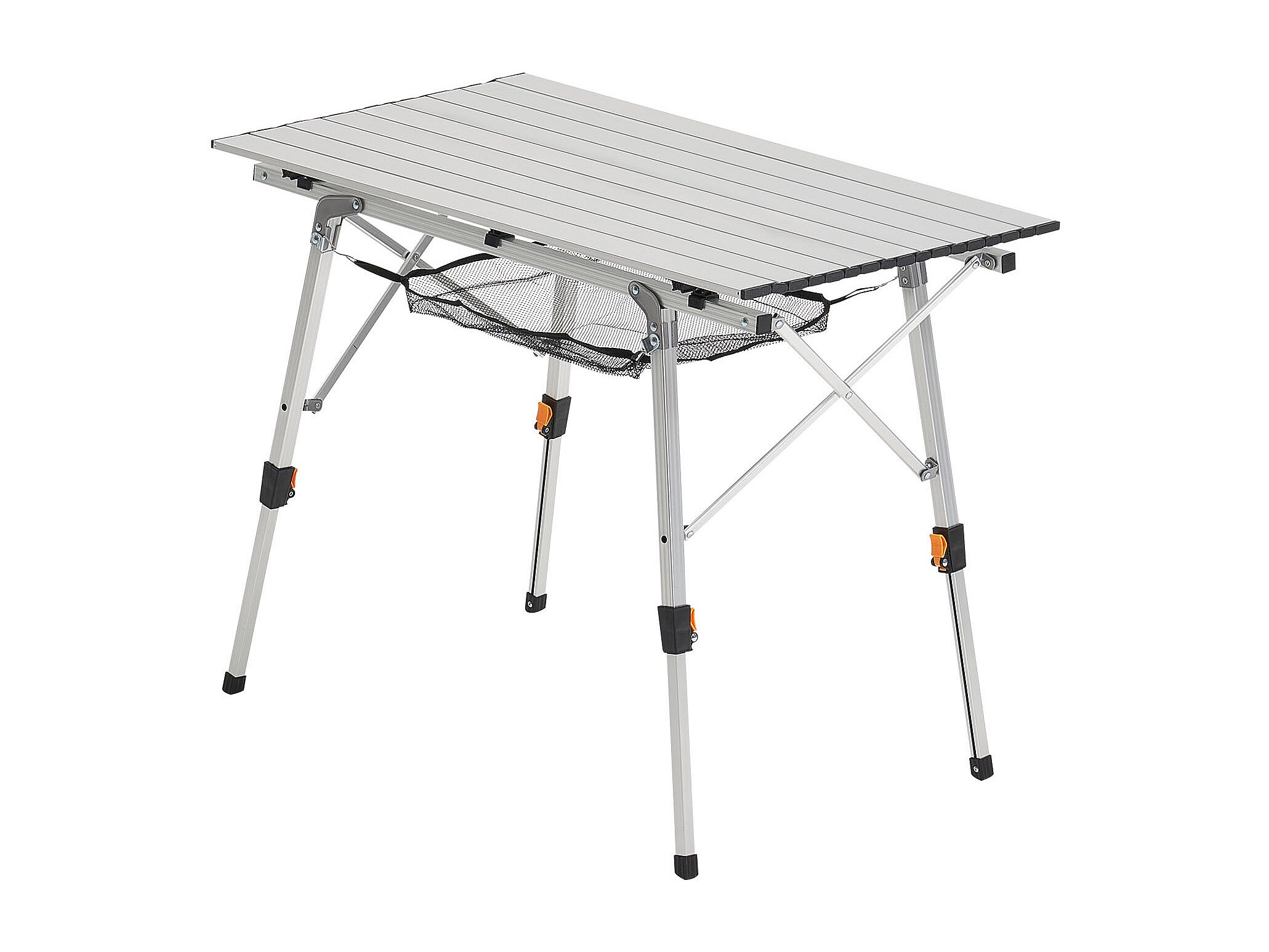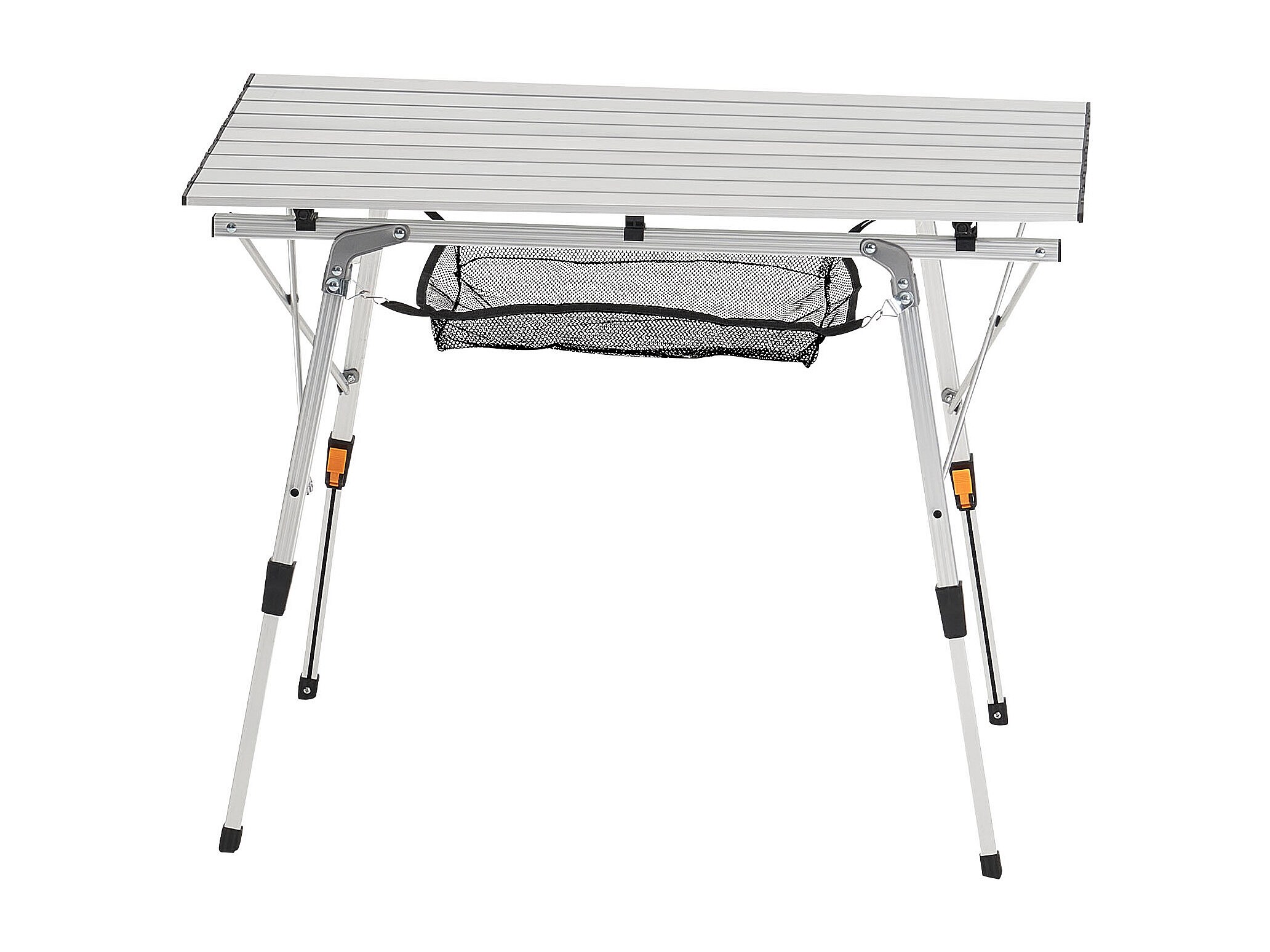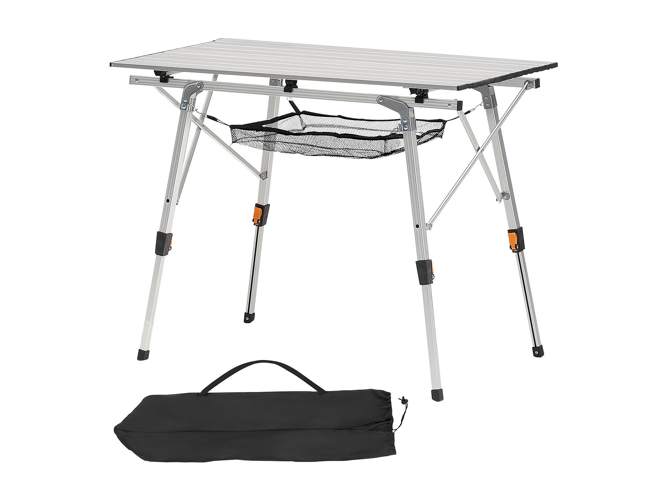 Campingtafel SucceBuy Opvouwbaar Oprolbaar 90x52 cm, Draagbaar Bijzettafeltje van Aluminium, met Instelbare Hoogte, Mesh Laag en Draagtas