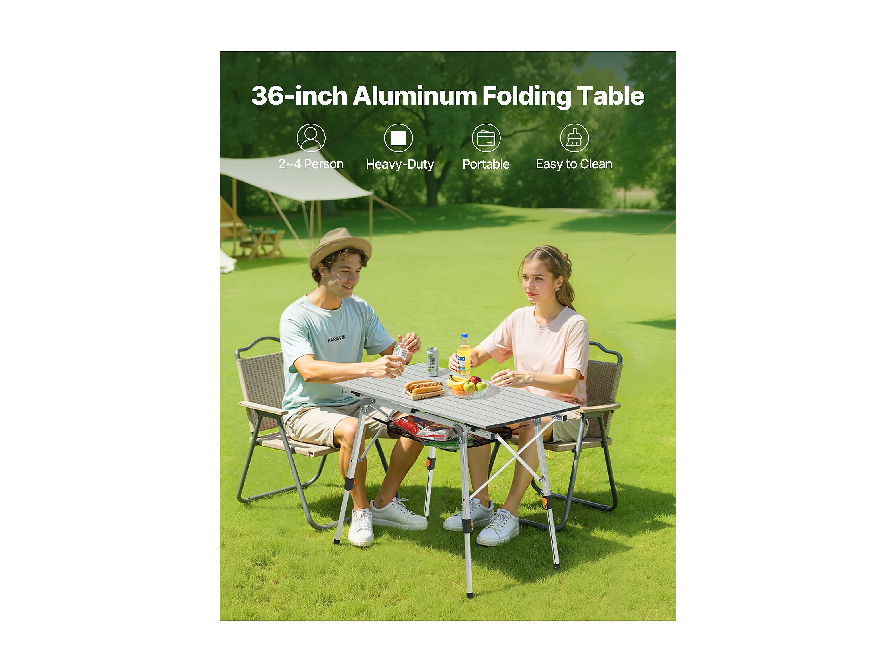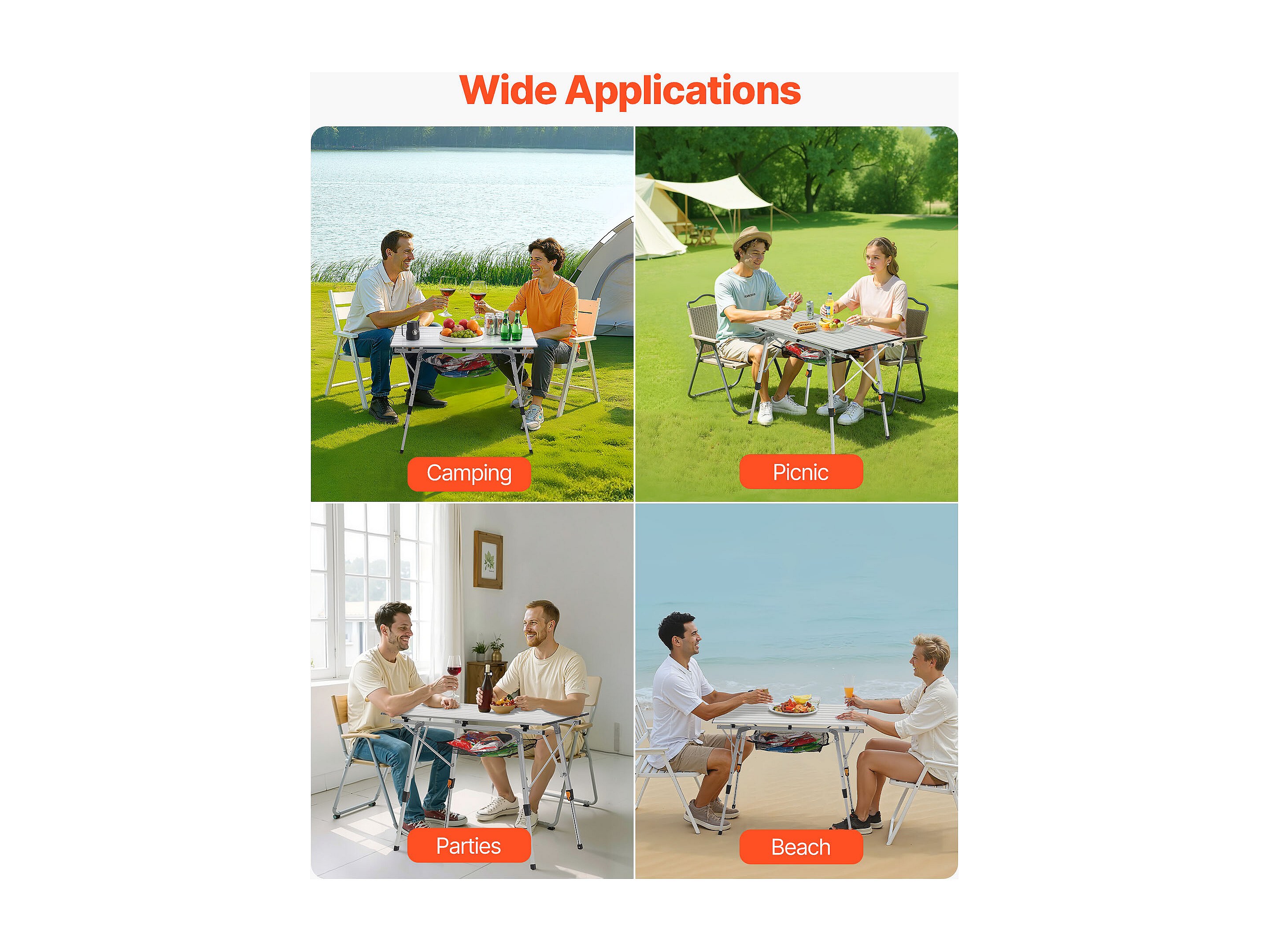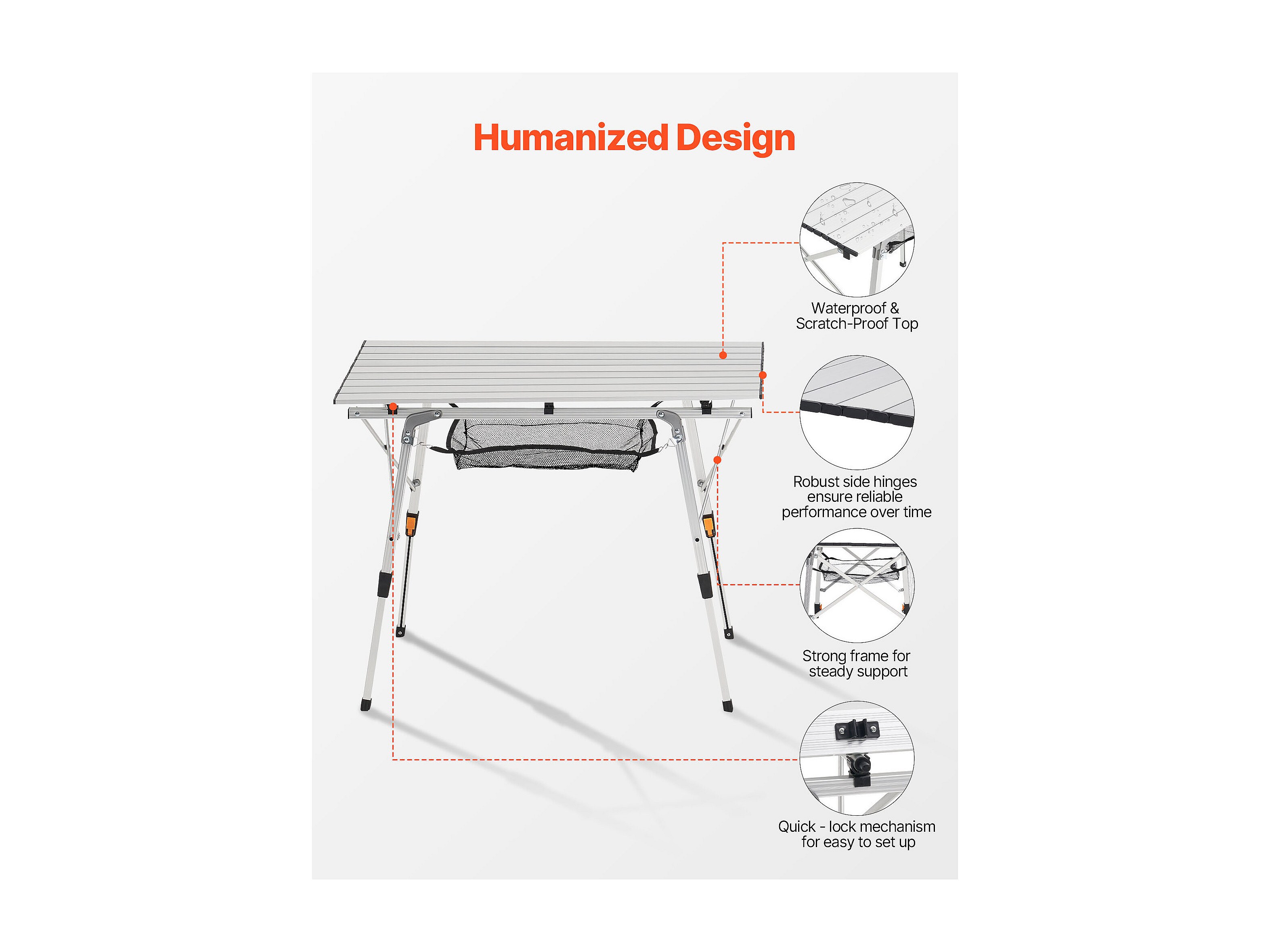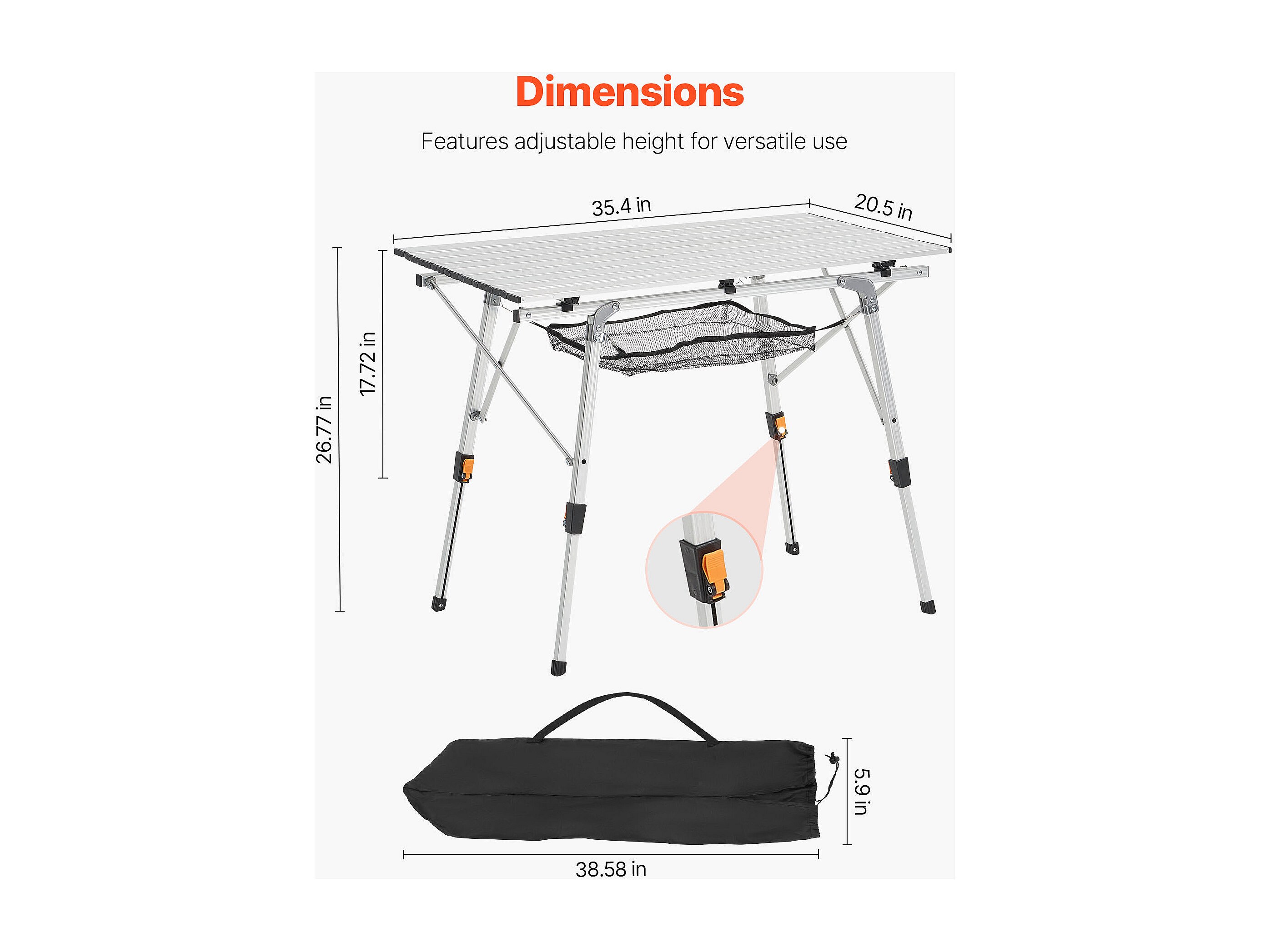 Campingtafel SucceBuy Opvouwbaar Oprolbaar 90x52 cm, Draagbaar Bijzettafeltje van Aluminium, met Instelbare Hoogte, Mesh Laag en Draagtas
