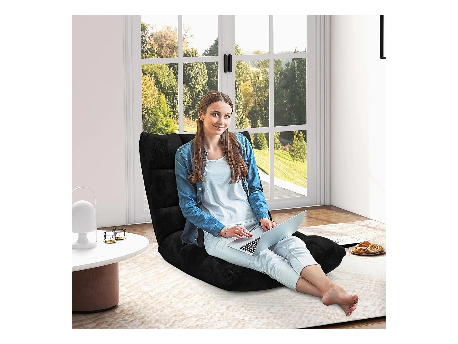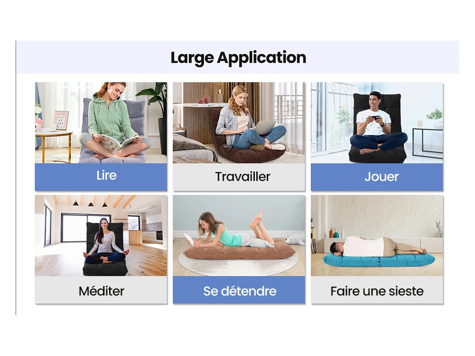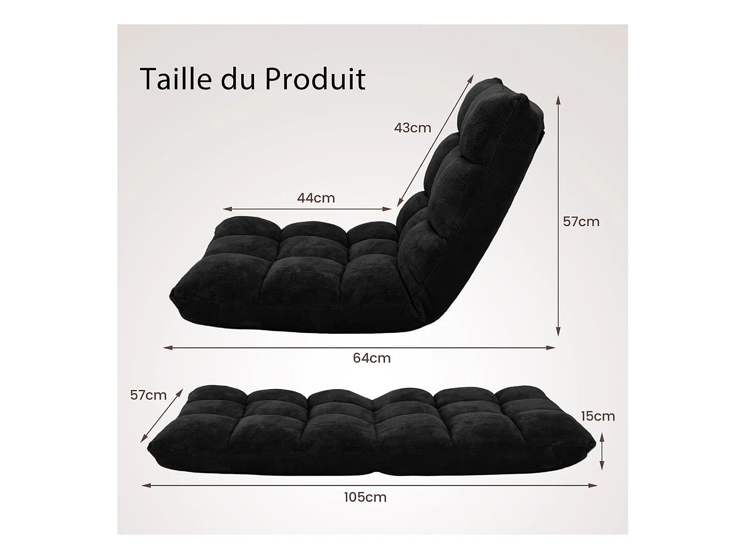 Chaise de Sol Pliable, Tatami Inclinable en 6 Position, Idéal pour Chambre, Salon, Bureau, 44 x 54,5 x 53,5 cm (L x l x H)