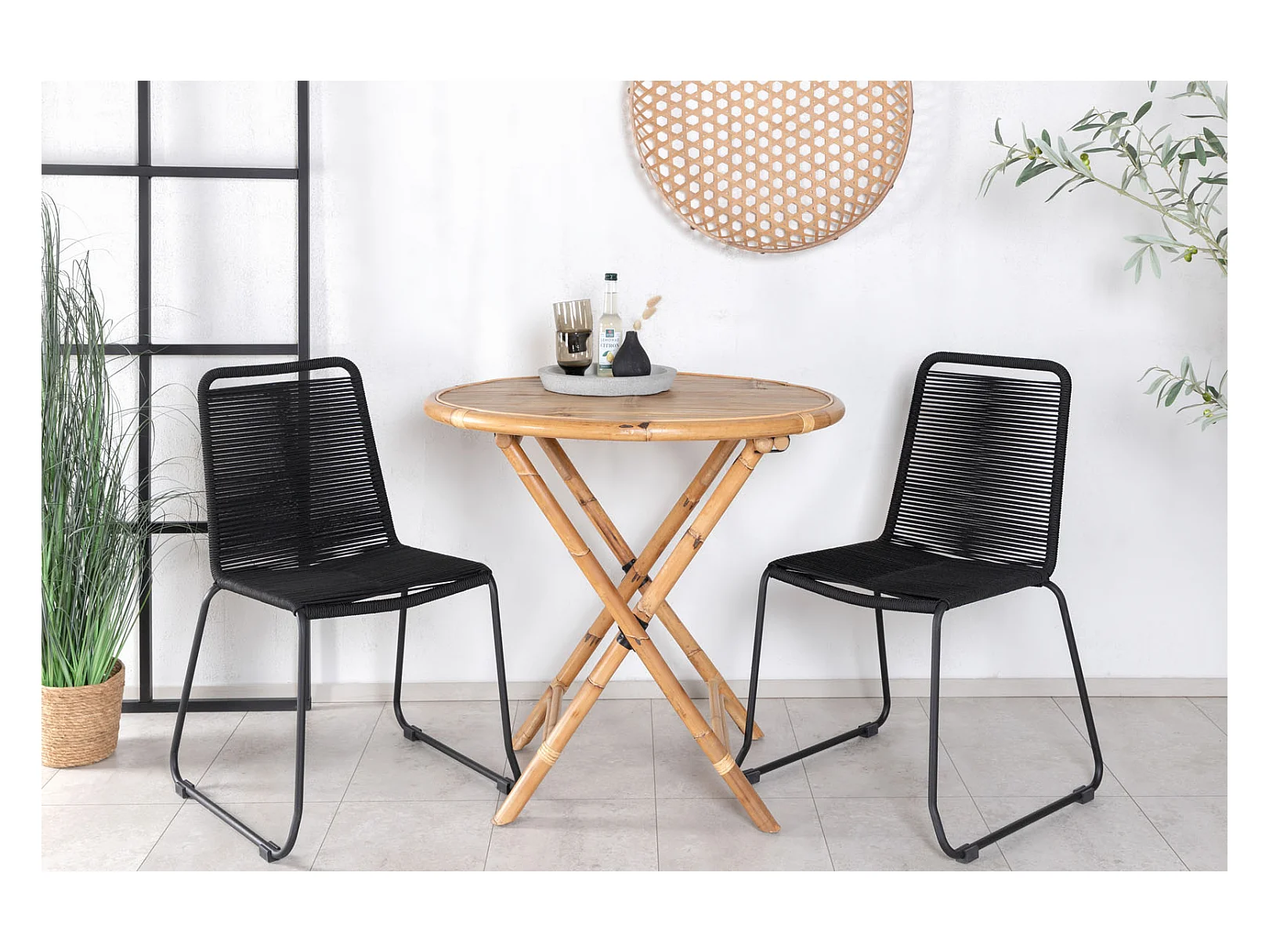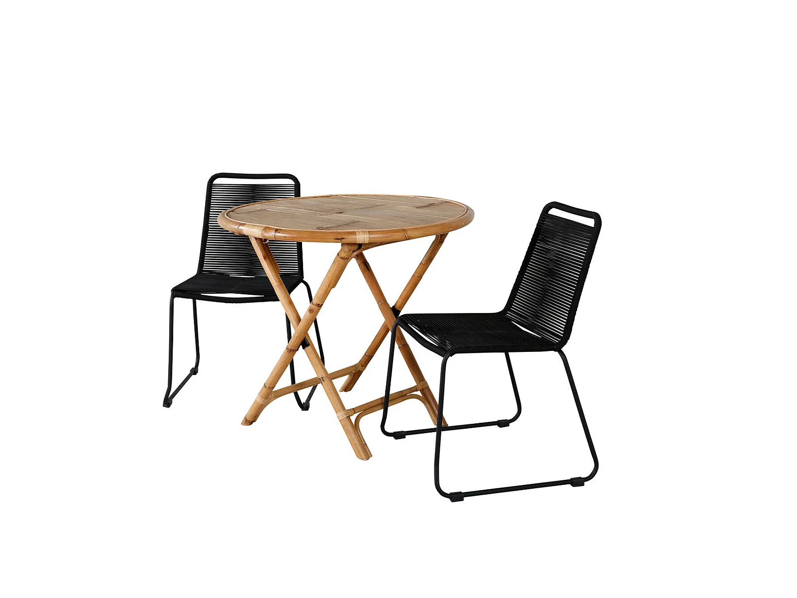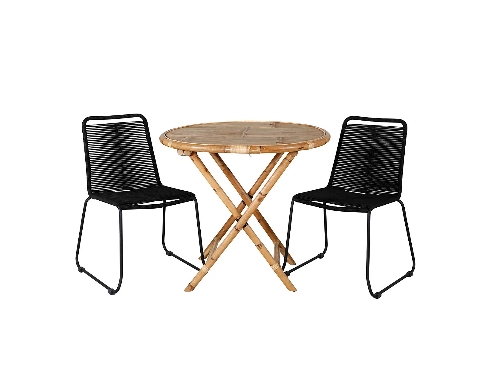 Cane tuinmeubelset tafel Ø80cm en 2 stoel S Lindos zwart, naturel.