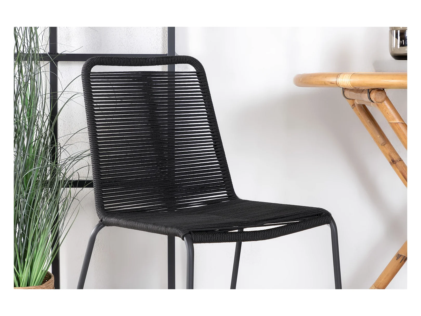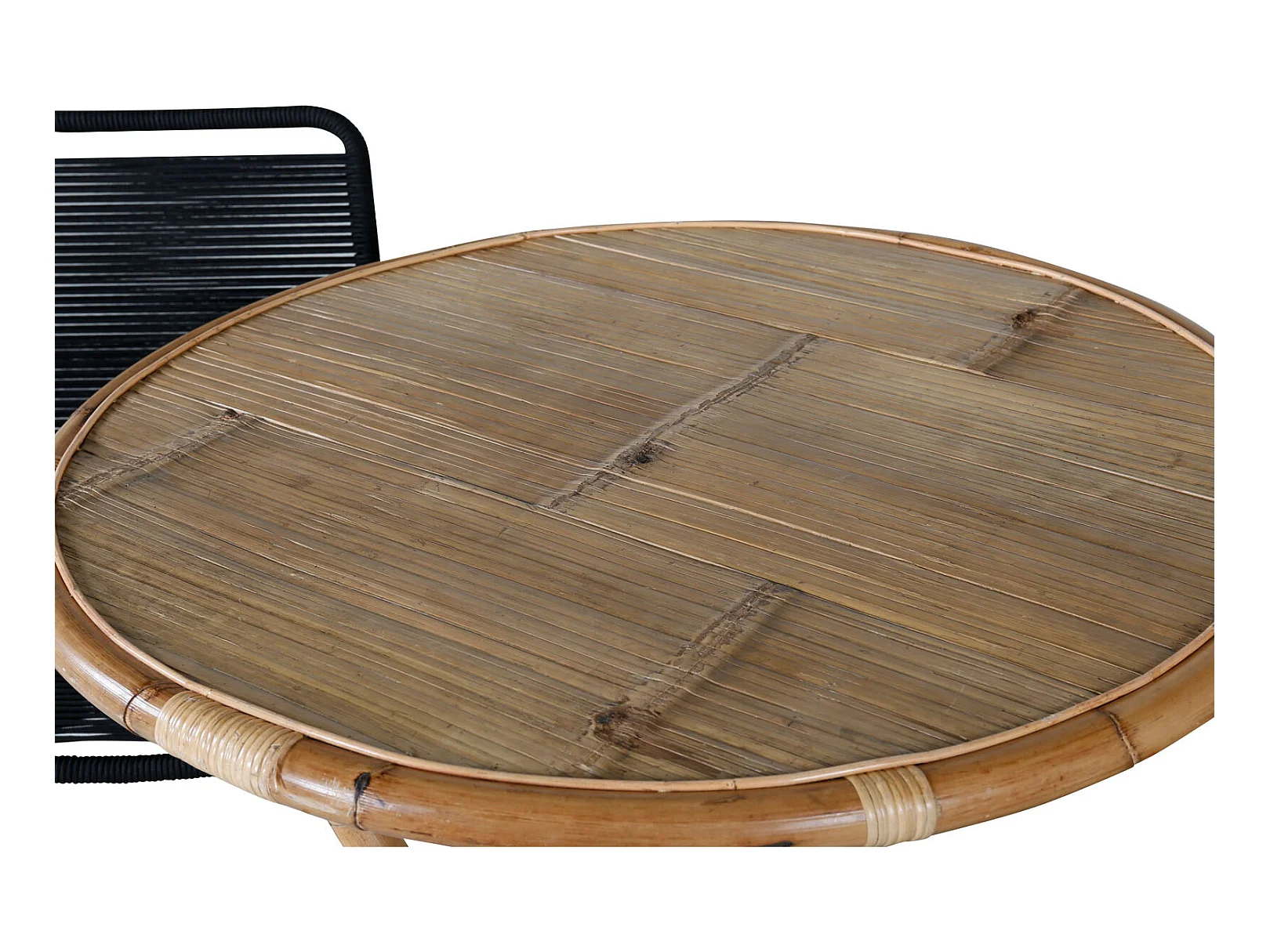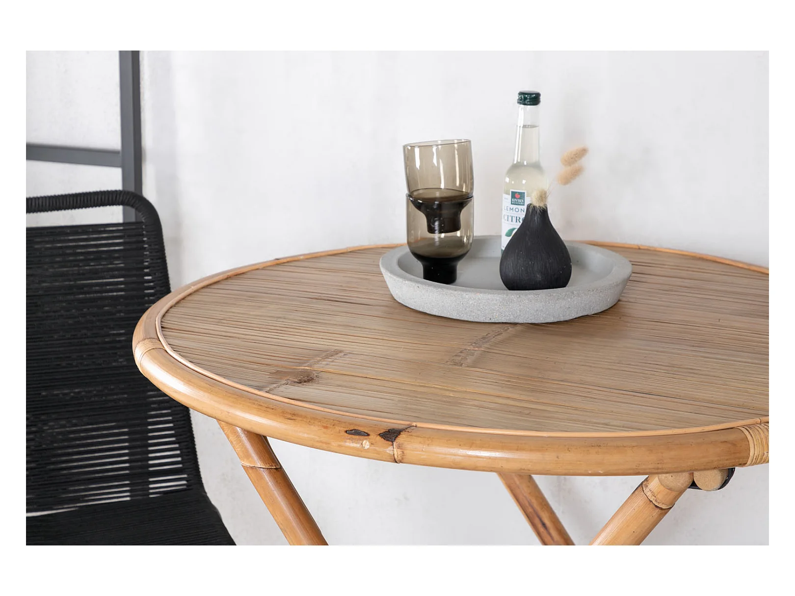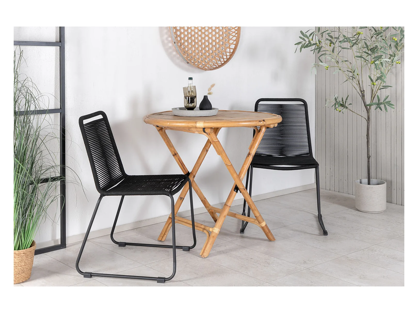 Cane tuinmeubelset tafel Ø80cm en 2 stoel S Lindos zwart, naturel.