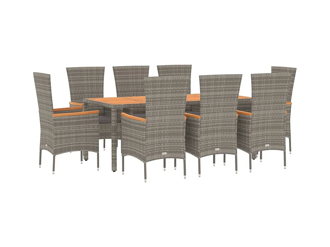 Valentin 9-delige Tuinset met kussens poly rattan grijs