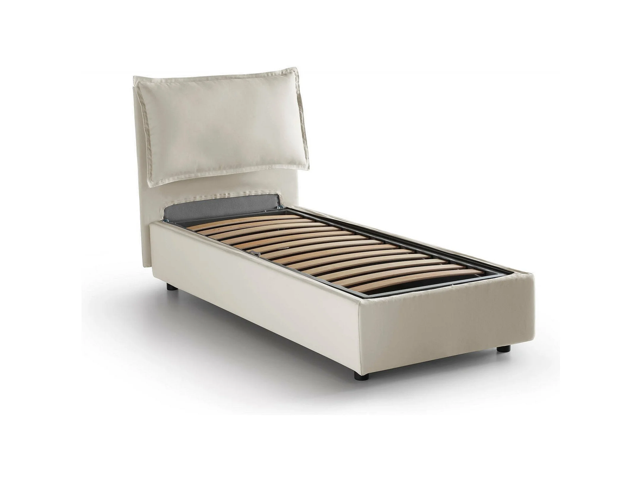 Talamo Italia Eenpersoonsbed Carla Beige Afneembare Hoes Opslag, Matrasmaat 90x200 cm Made in Italy
