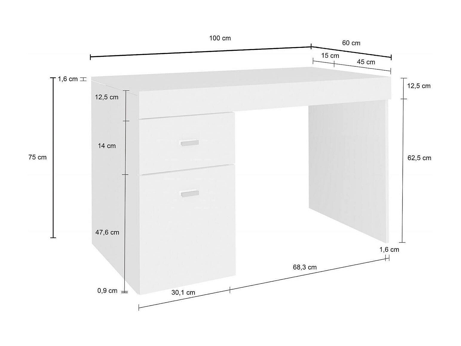 Carmine bureau, Lineair PC-bureau, Multifunctionele kantoortafel, Ruimtebesparend bureau, 100% Made in Italy, 100x60h75 cm, Glanzend wit lariks,