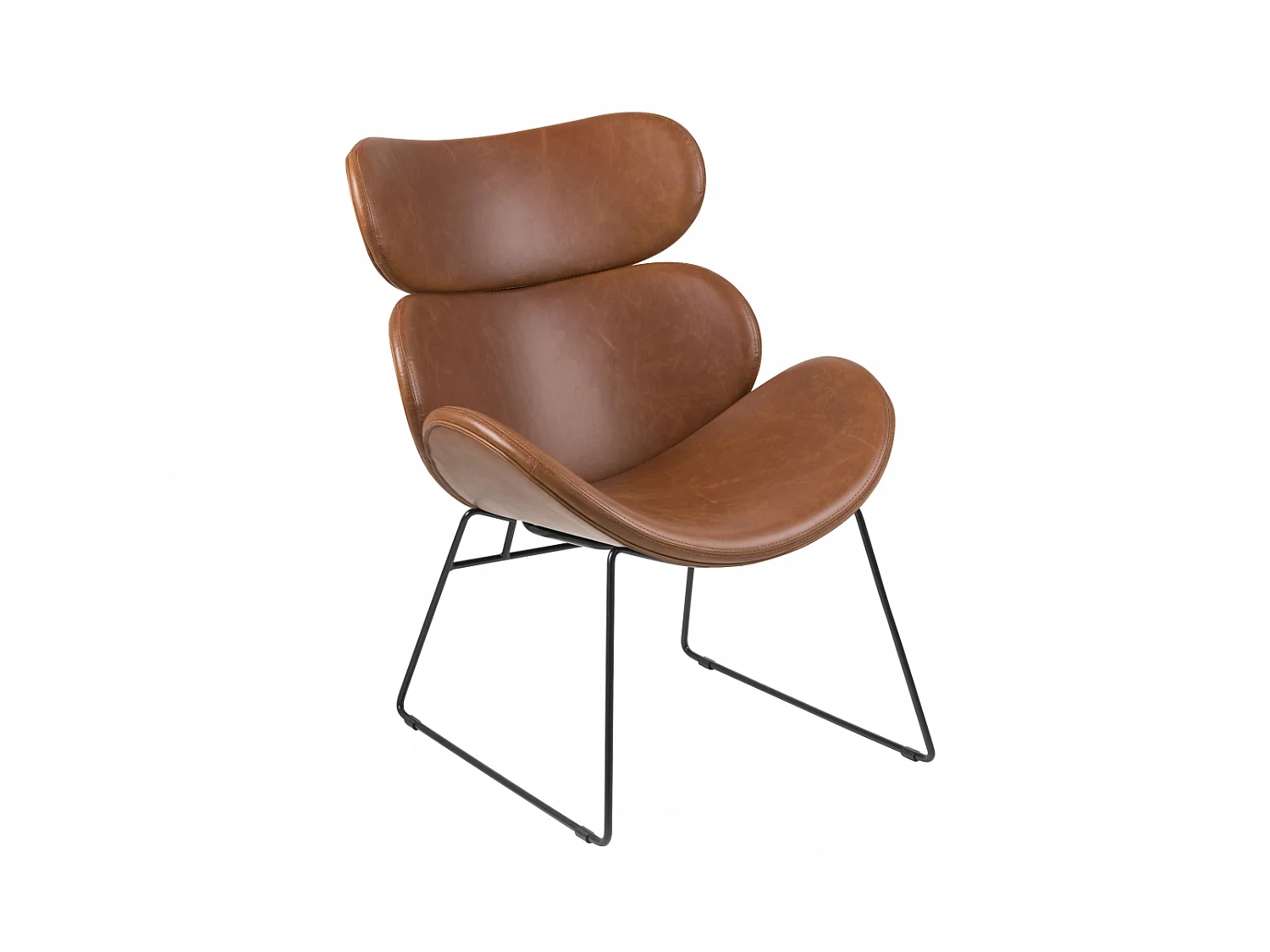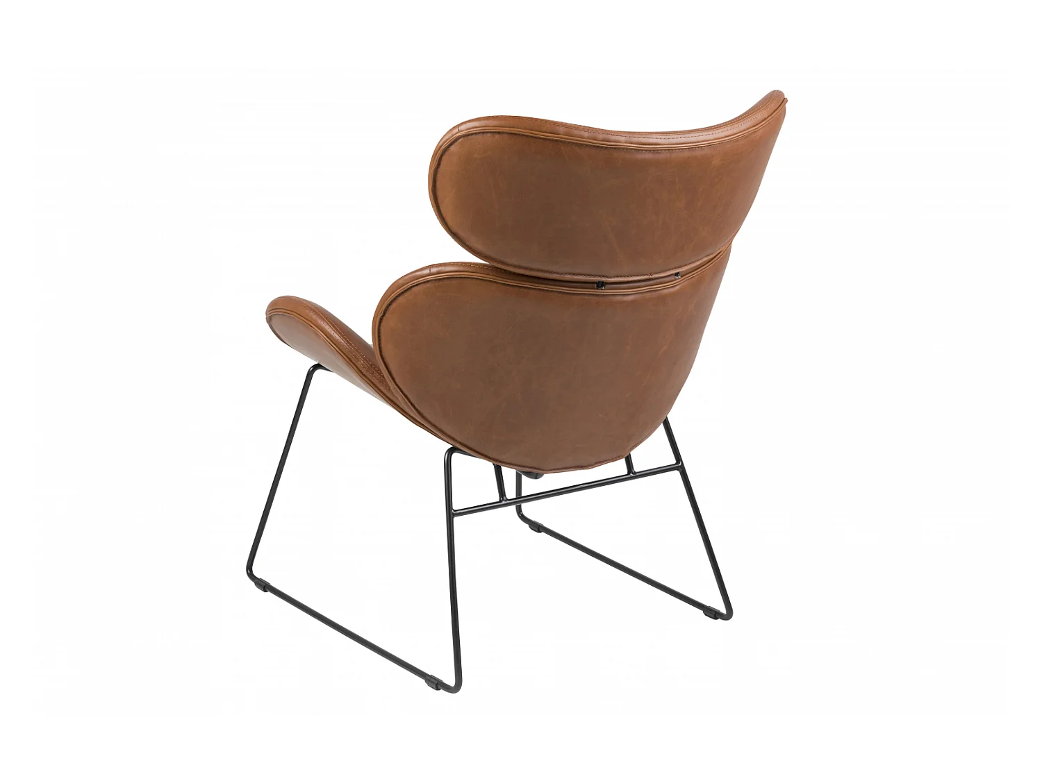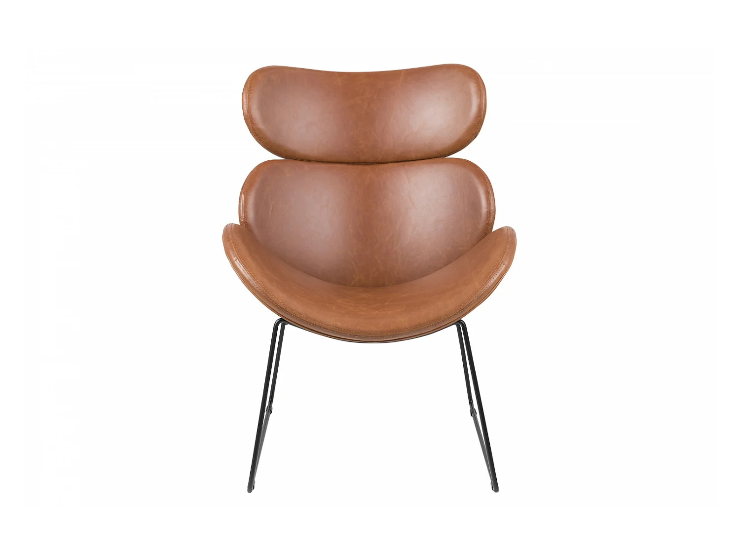 Cazy fauteuil in cognac kunstleder en zwart metalen onderstel.