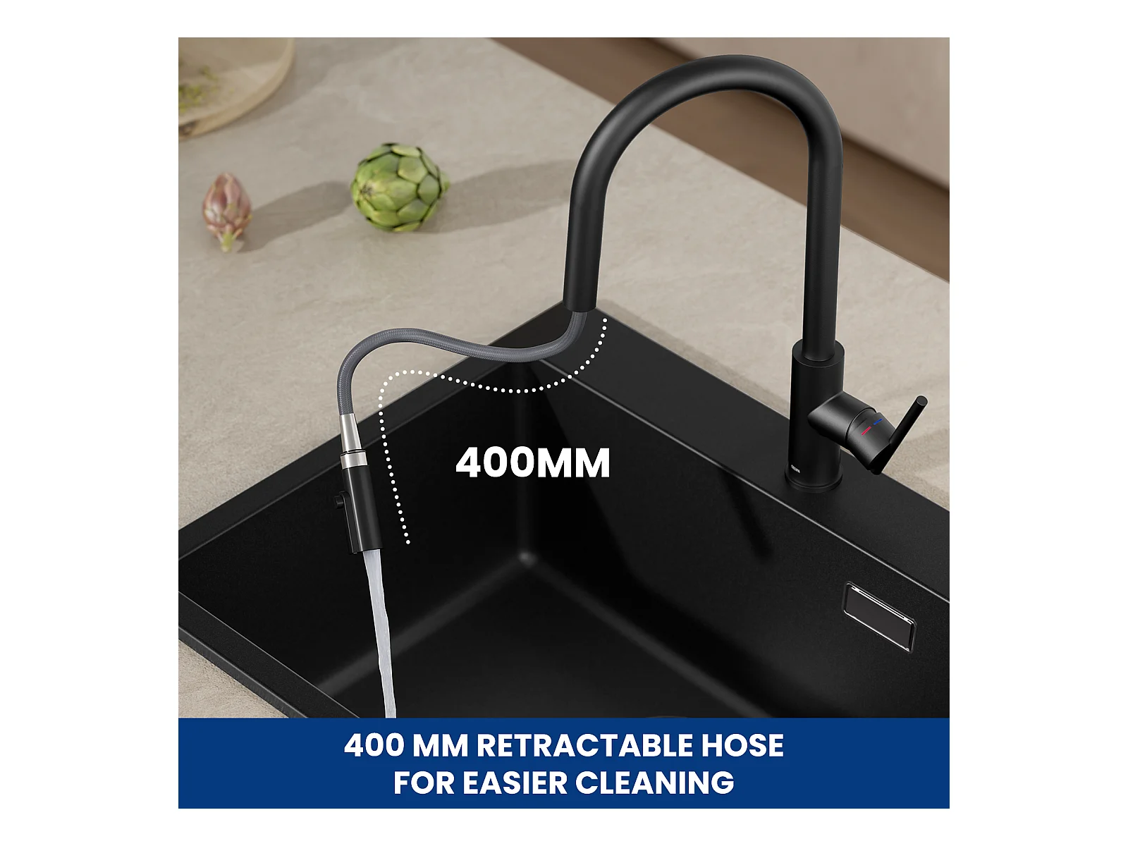 NETTLIFE Keukenkraan met uittrekbare douchekop Mengkraan Keuken draaibare kraanmond Mengkraan voor wastafel hoge druk met 2 soorten stralen, Zwart