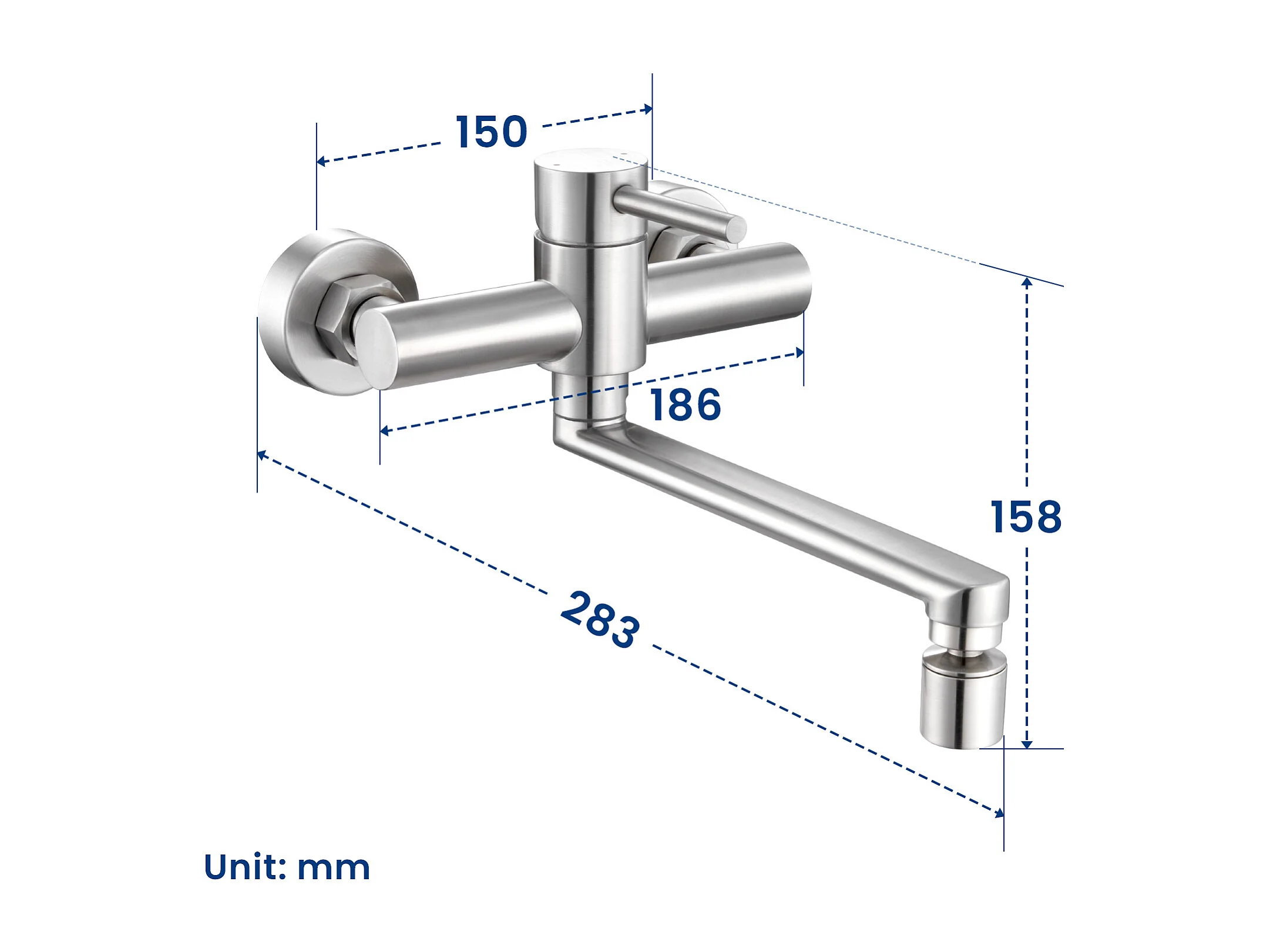 Cecipa max Wandkeukenkraan met draaibare uitloop - 2-straals wastafelmengkraan naar keuze - 360° draaibare zwarte wandkraan, EU-model