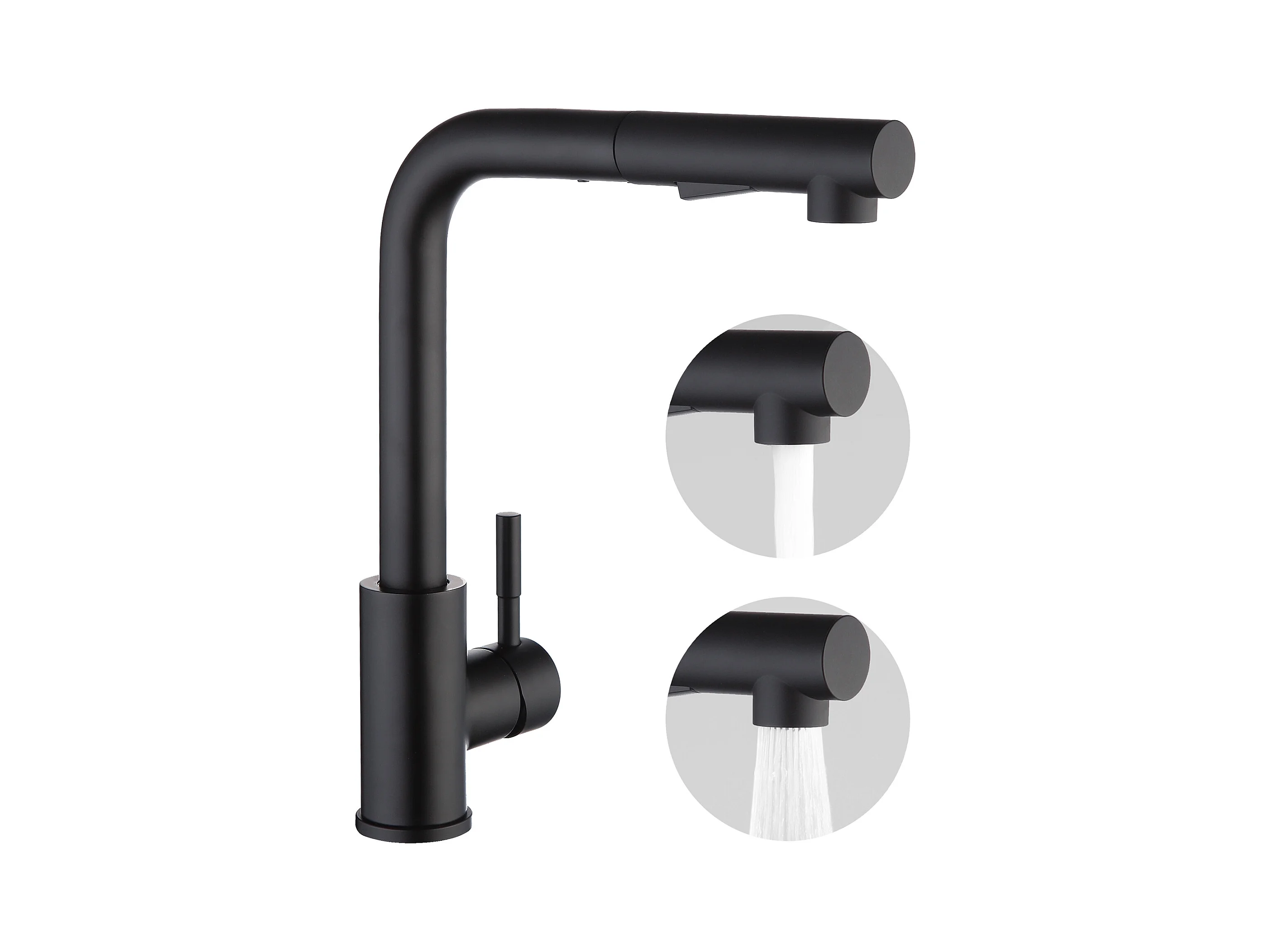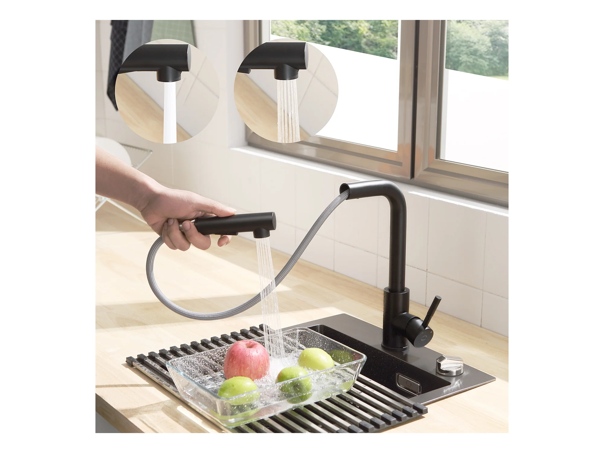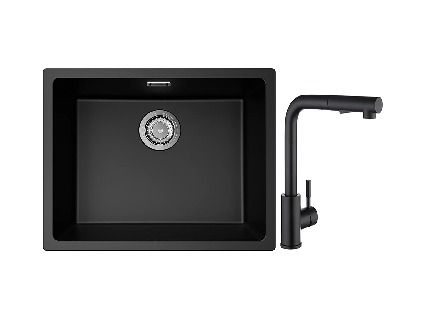 CECIPA MAX Spoelbak 1 Kom in Kwarts en Hars Zwart Grijs 55*44*20cm + Keukenmixer met Zwarte Uittrekbare Spray