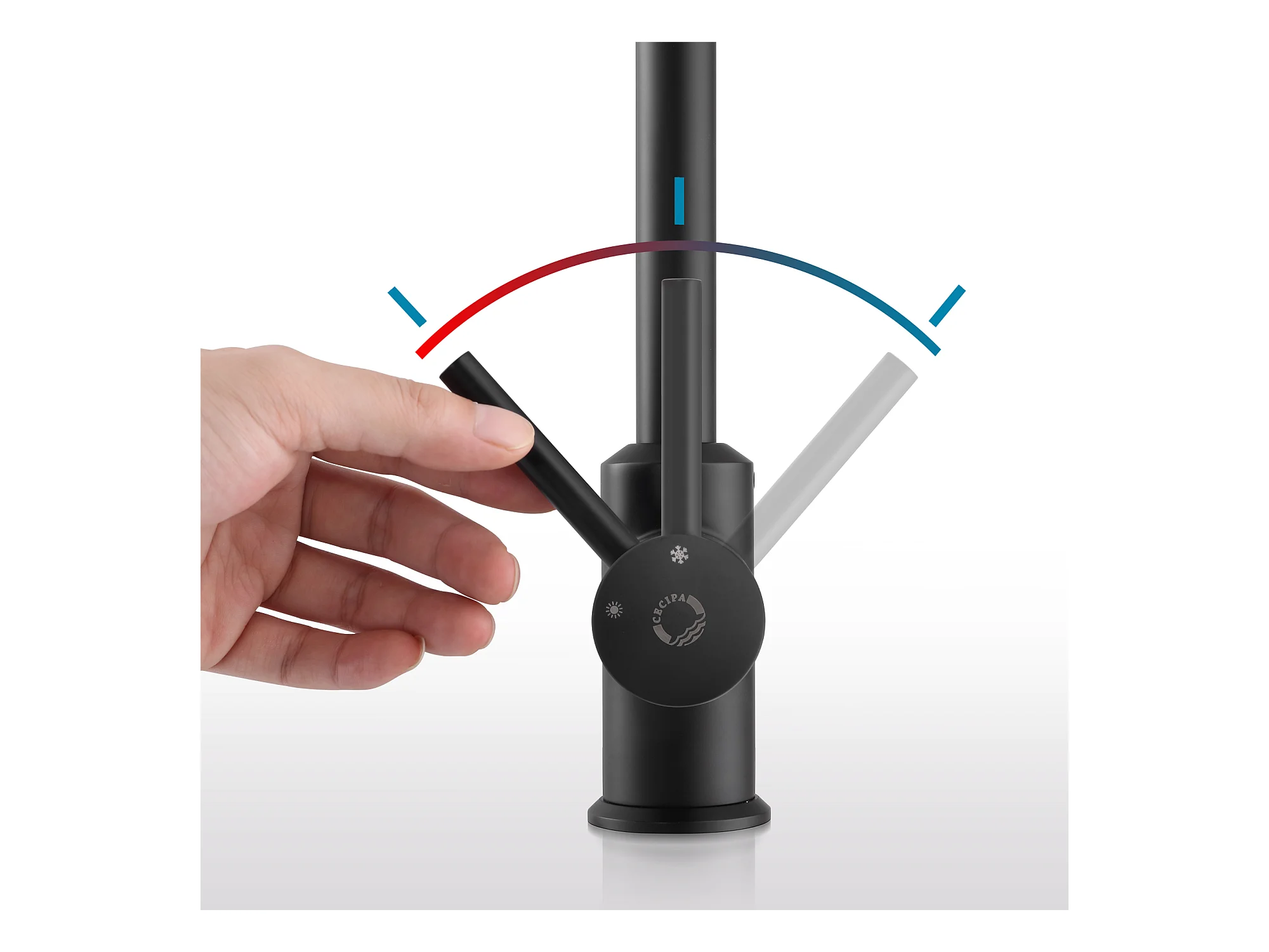 Cecipa max U-vormige roestvrijstalen keukenmengkraan - koud- en warmwatergootsteenmengkraan met afneembare bubbler - zwart, EU-model