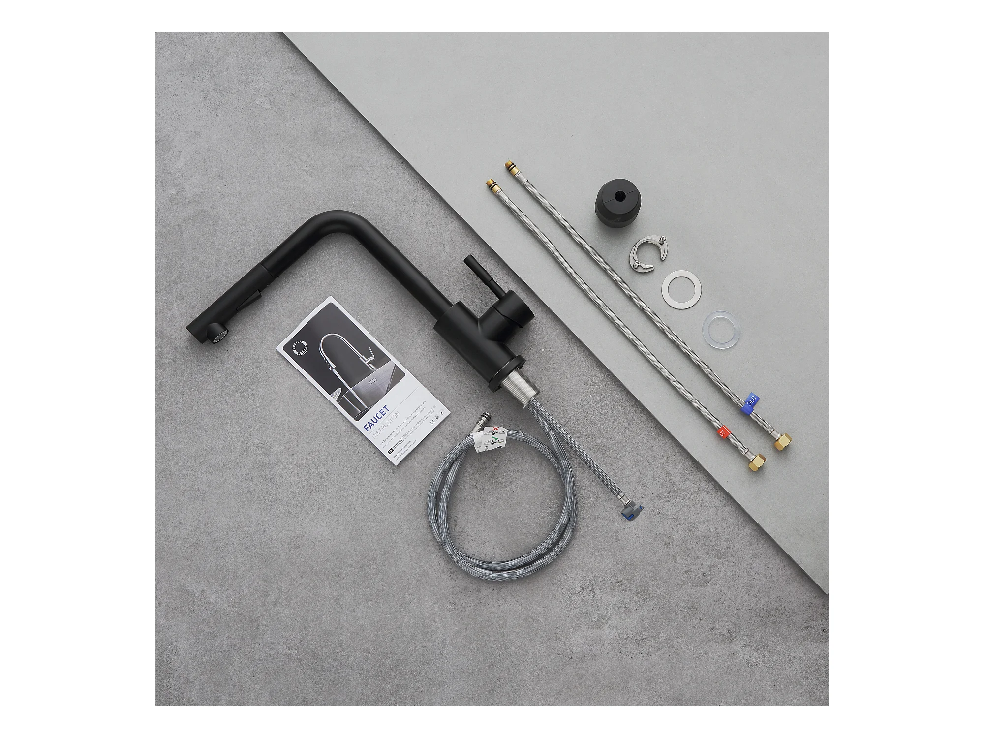 Auralum MAX Wastafelmengkraan, 360° draaibare keukenkraan, warm- en koudwaterleidingen en complete accessoires, messing, zwart