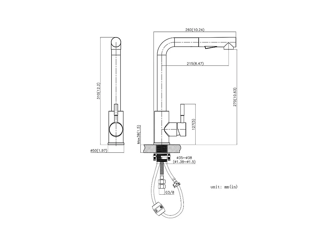CECIPA MAX Zwarte keukenmengkraan met uittrekbare sproeier, enkele bediening, 360° rotatie, 2 straalmodi Aanrechtkraan
