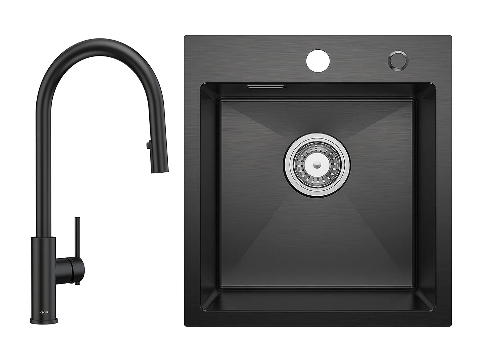 CECIPA MAX zwarte keukenspoelbak 40*45CM - roestvrijstalen spoelbak 1 spoelbak + keukenmengkraan met uittrekbare spray, 2 waterafvoermodi, zwart